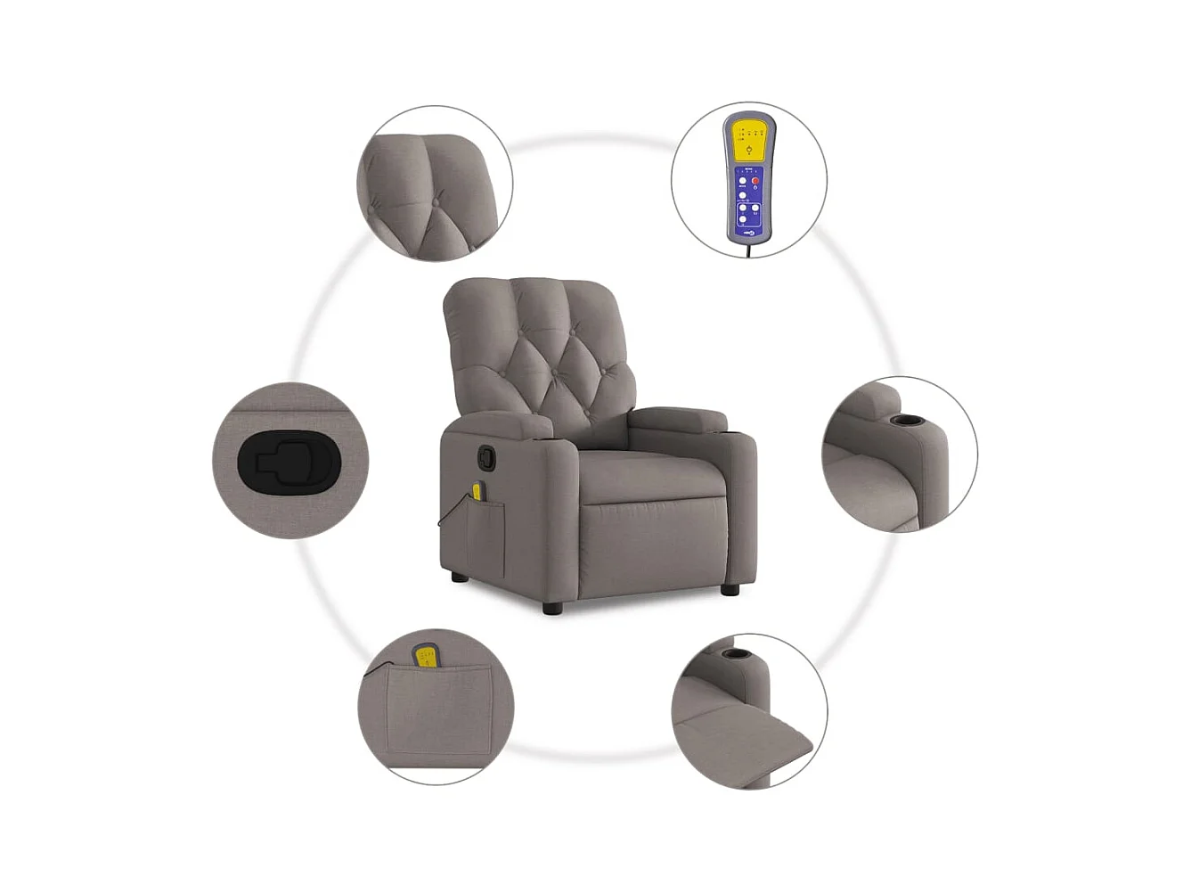 Poltrona de massagens reclinável tecido cinzento-acastanhado SHL886843