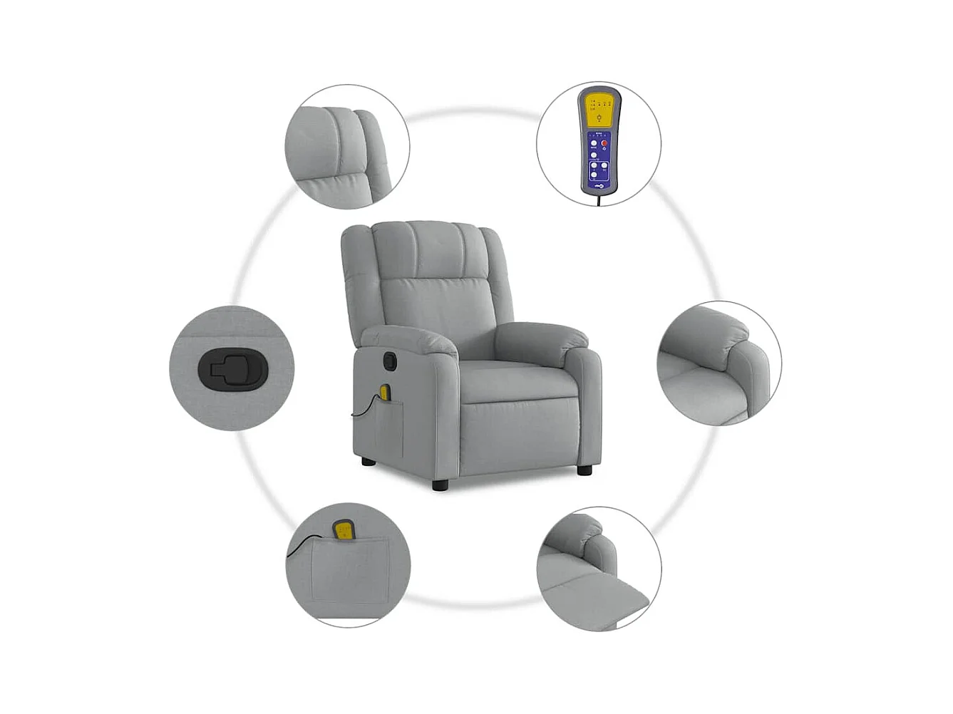 Poltrona de massagens reclinável tecido cinzento-claro SHL76888