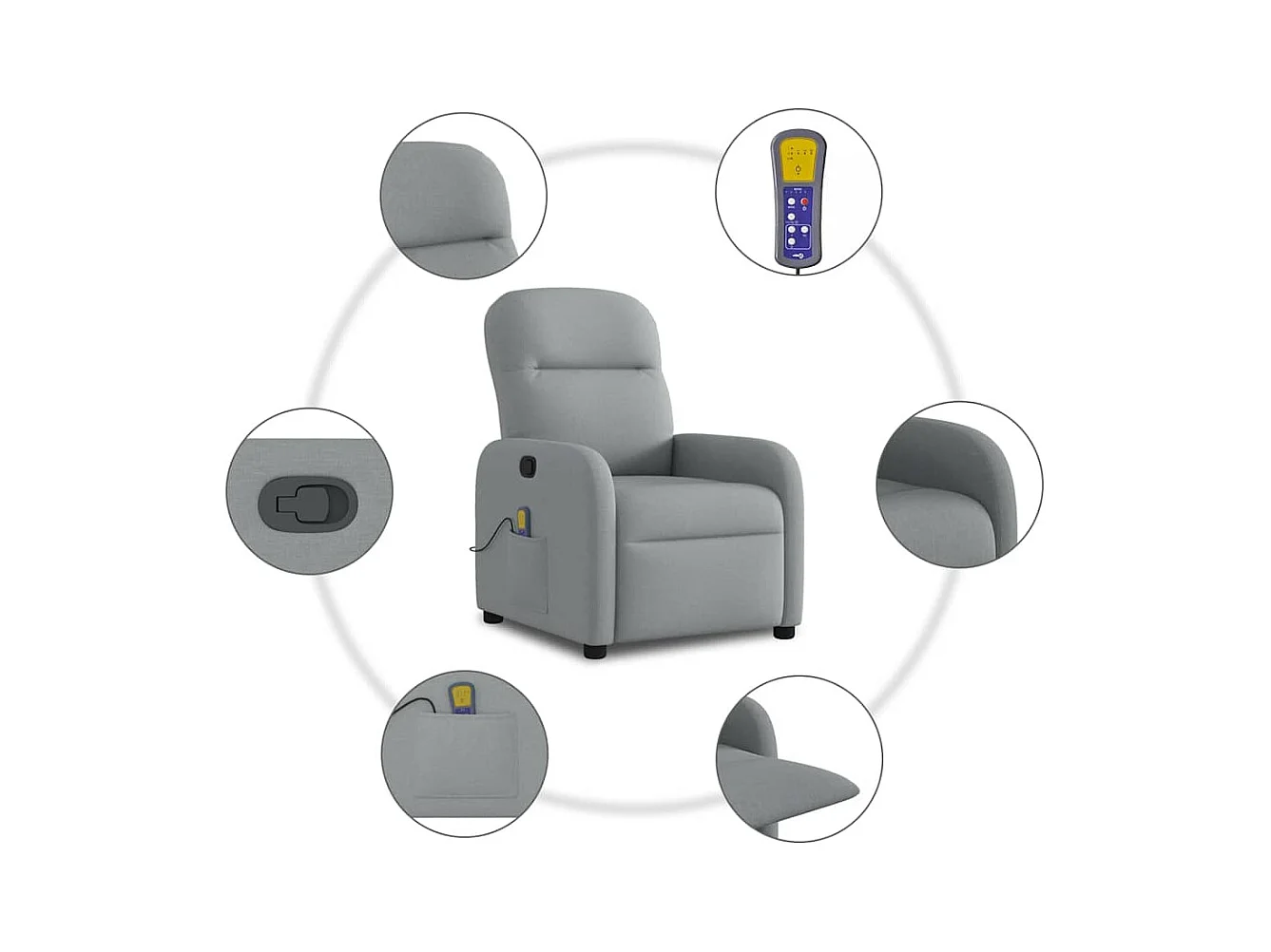 Poltrona elétrica reclinável massagens tecido cinzento-claro SHL64648