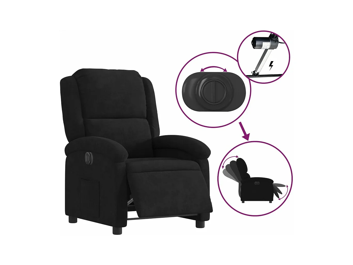 Poltrona reclinável elevatória elétrica couro artificial preto PT787303