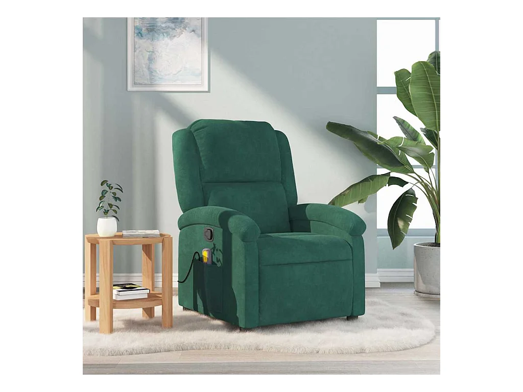 Poltrona de massagens reclinável veludo verde-escuro SHL800825