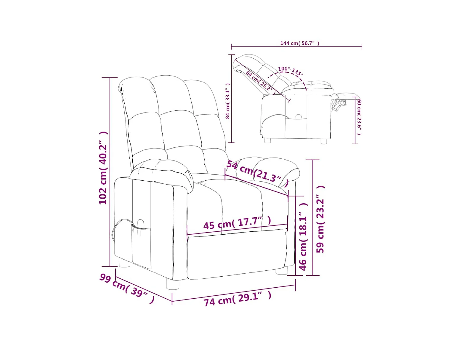 Poltrona reclinável massagens elétrica tecido cinza-acastanhado
