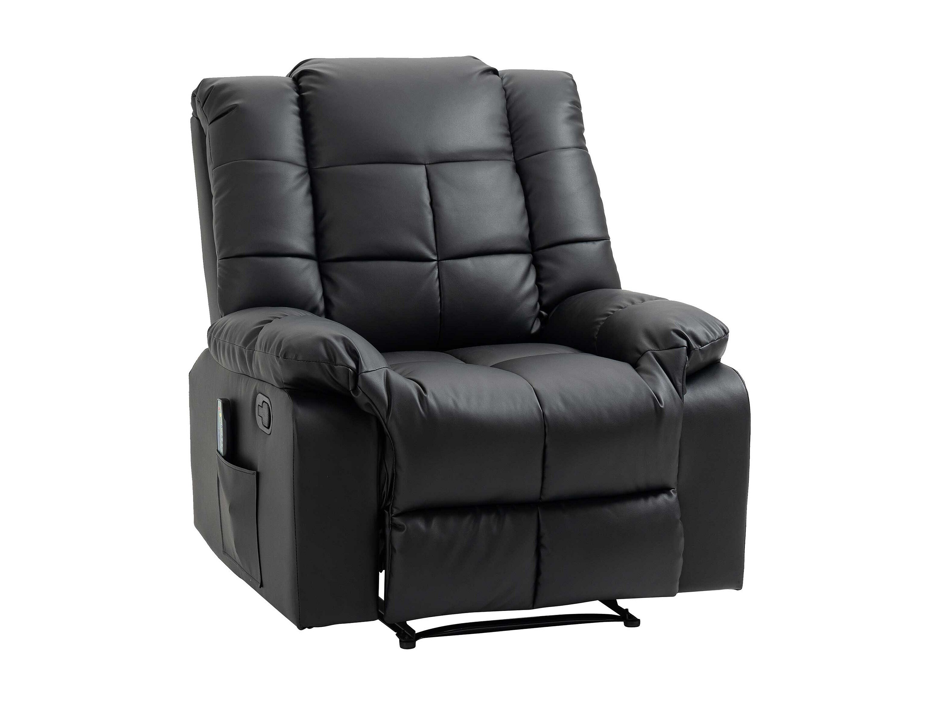 Poltrona de relaxamento elétrica em couro sintético preto com massagem de 8 pontos e reclinação de 165°