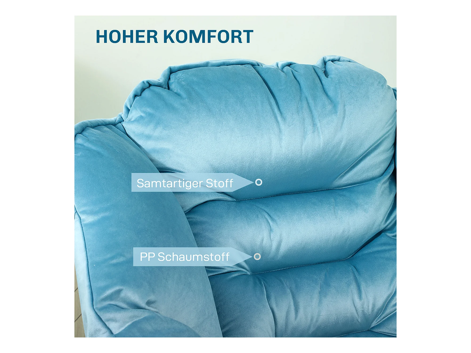 Poltrona escandinava de veludo poliéster com pernas de madeira para sala de estar, quarto, azul claro