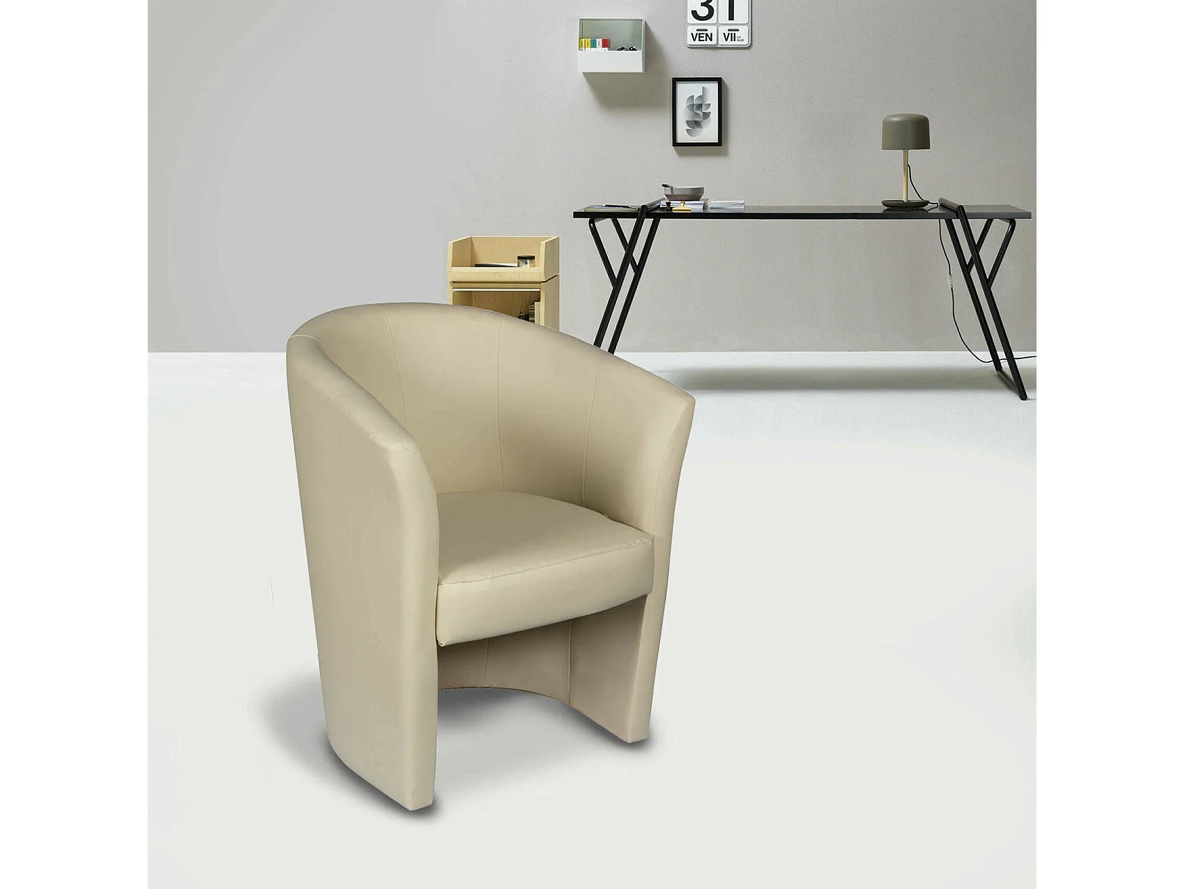 Poltrona Dpanett, Poltrona de sala, Assento acolchoado, Cadeira com braços em couro ecológico, 64x63h76 cm, Bege