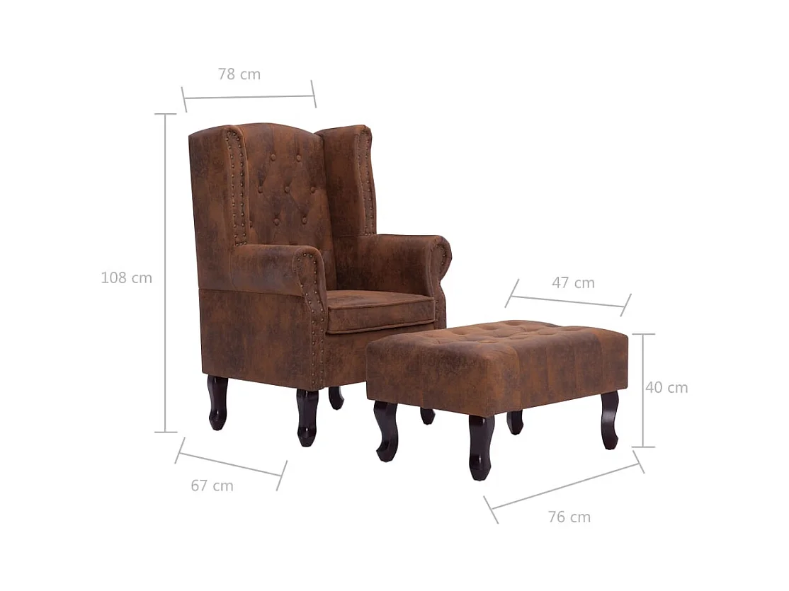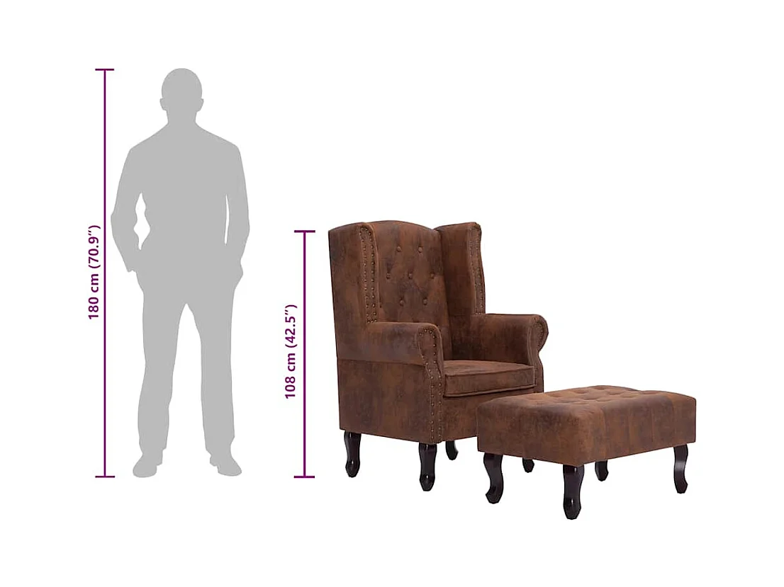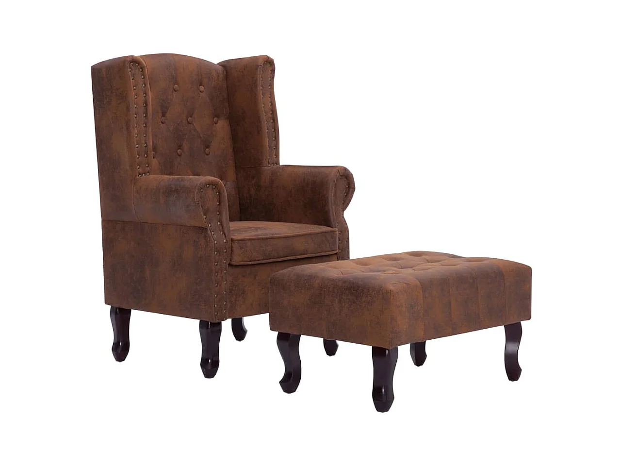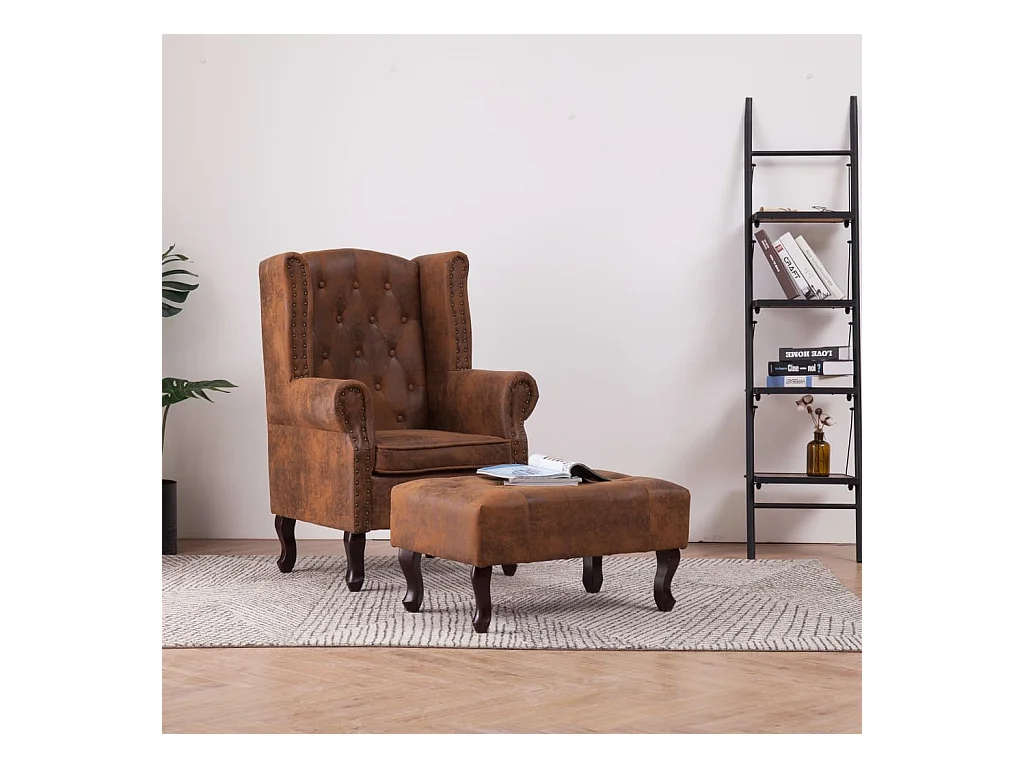 Poltrona com apoio de pés couro artificial castanho-escuro