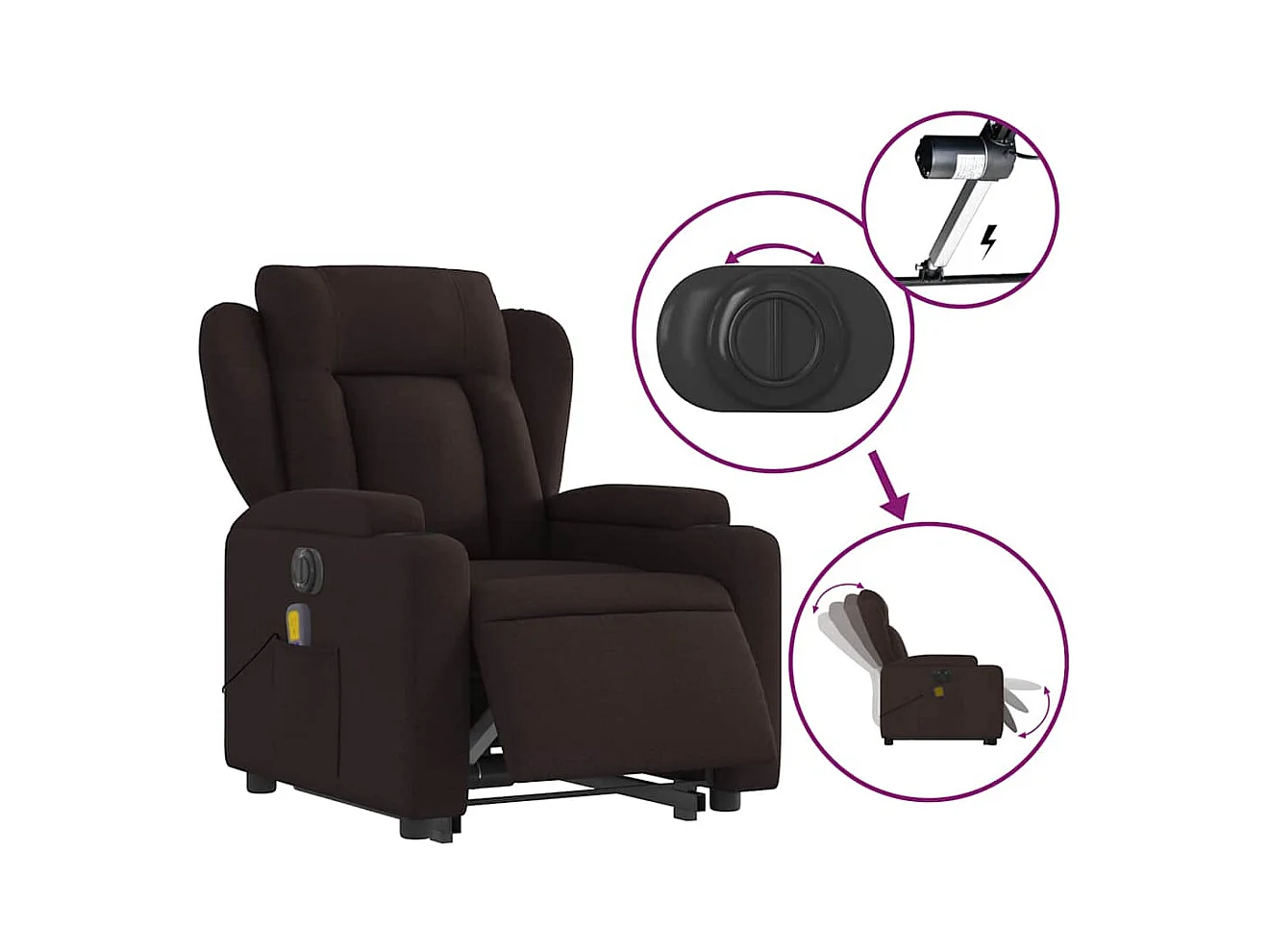 Poltrona massagens reclinável elevatória tecido castanho-escuro