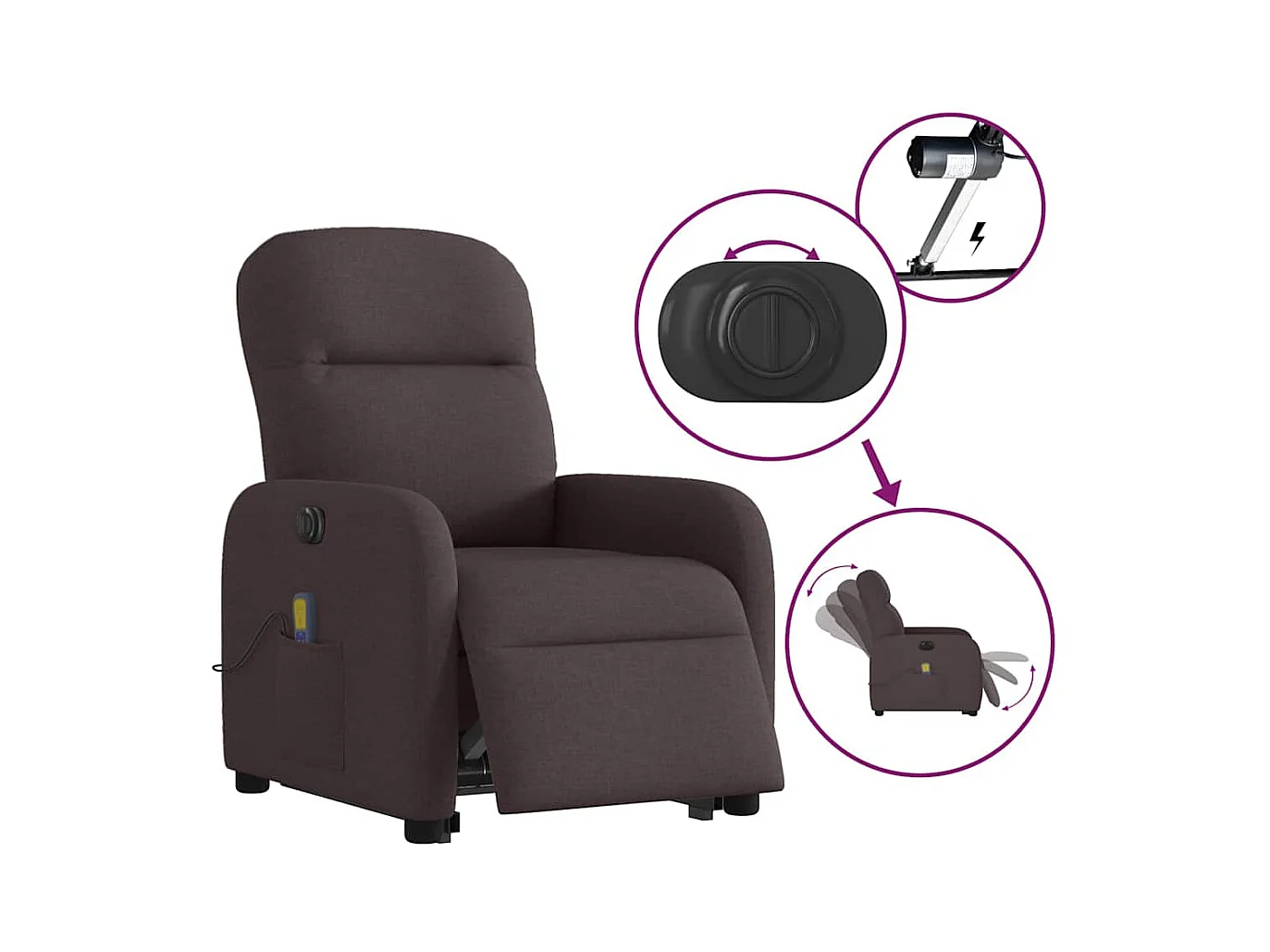 Poltrona elétrica elevatória massagens tecido castanho-escuro SHL462923