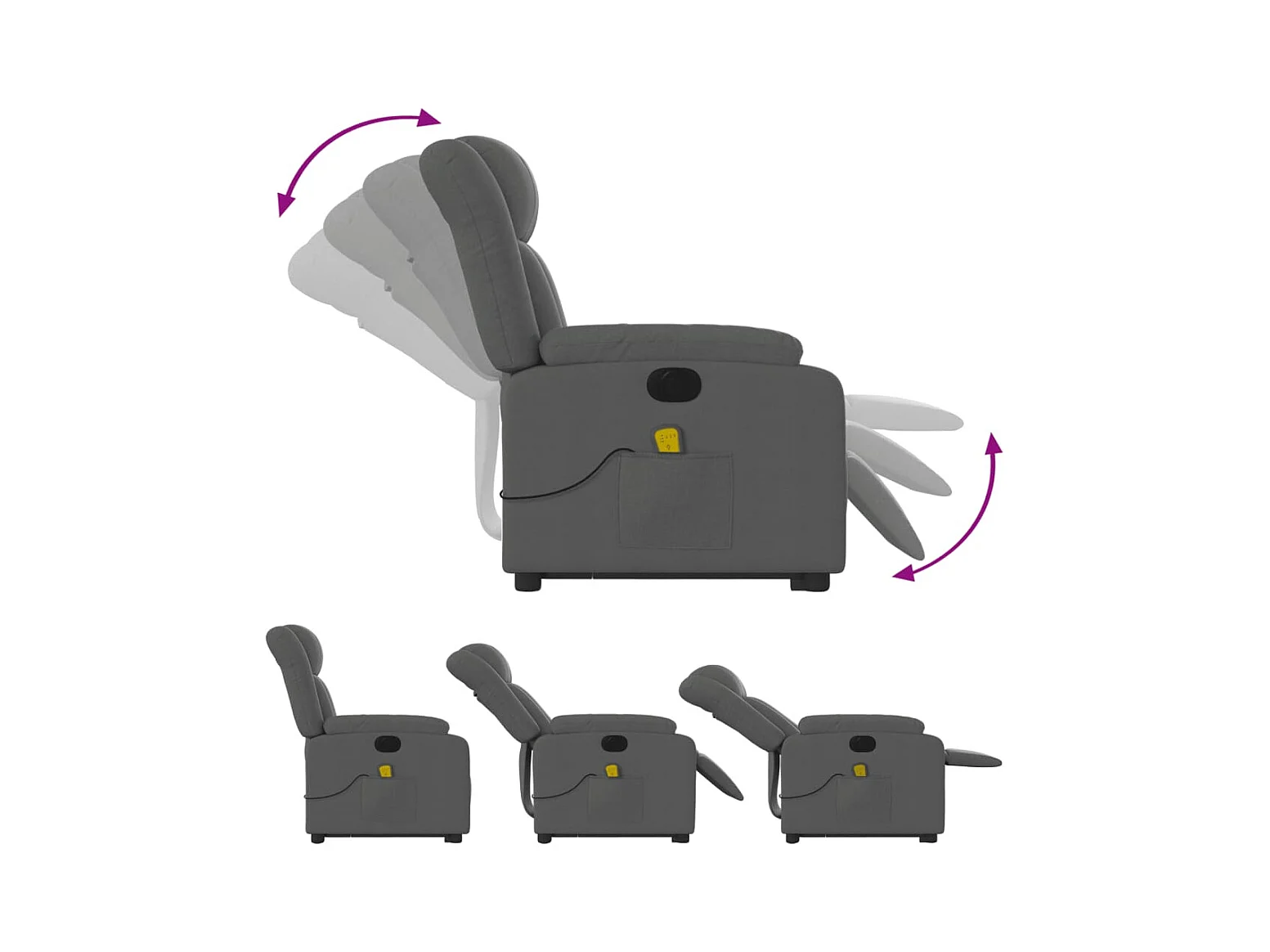 Poltrona elétrica elevatória massagens tecido cinzento-escuro SHL220322