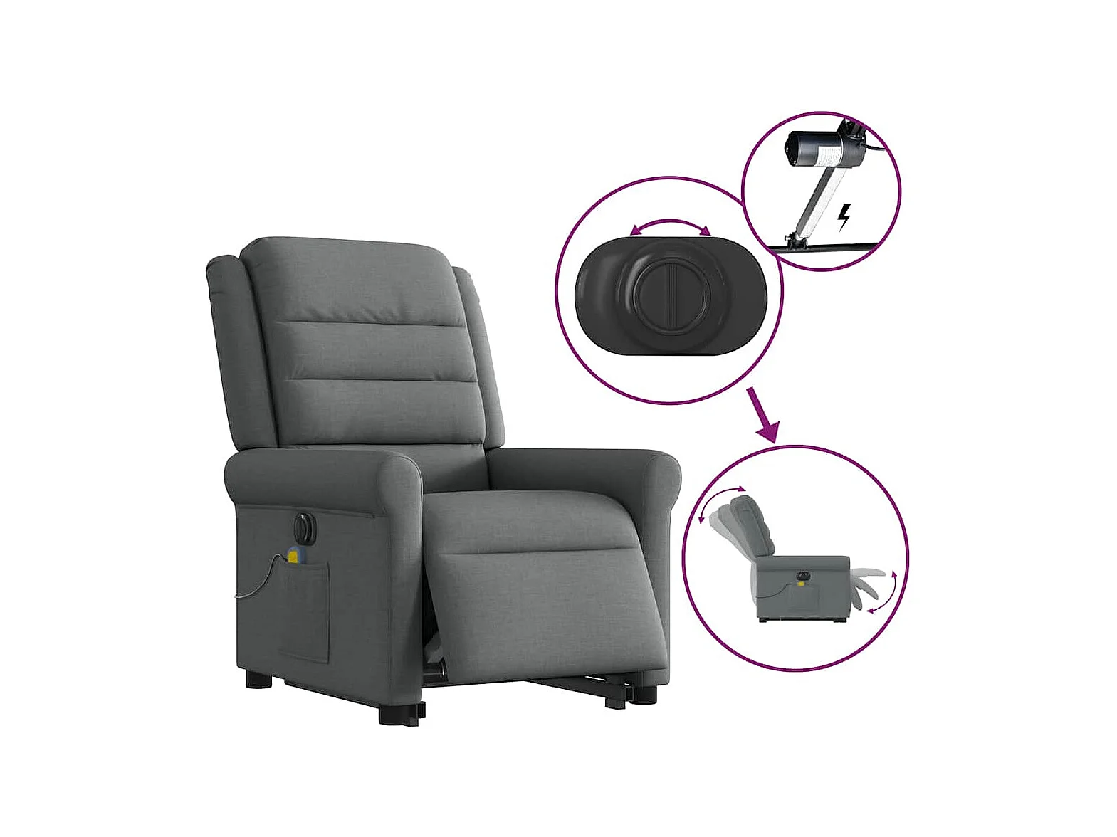 Poltrona elétrica elevatória massagens tecido cinzento-escuro SHL550231