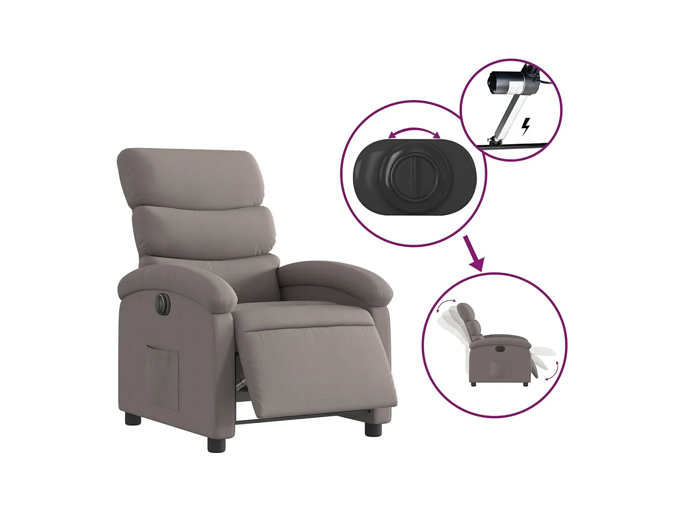 Poltrona elétrica reclinável tecido cinzento-acastanhado SHL373676