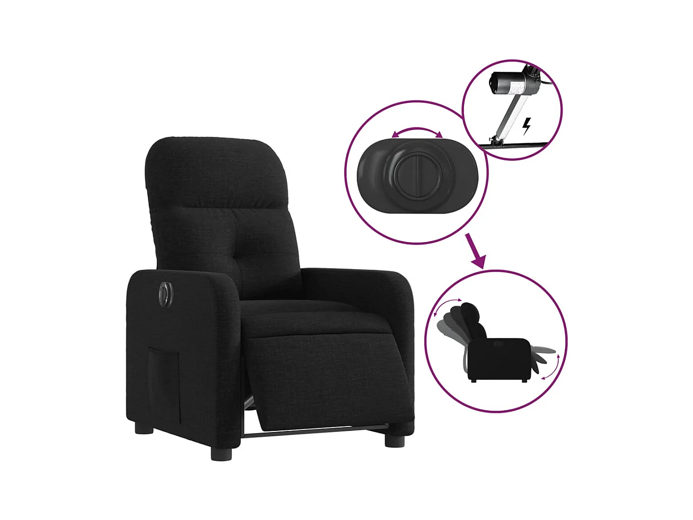 Poltrona reclinável elevatória elétrica tecido preto PT885370