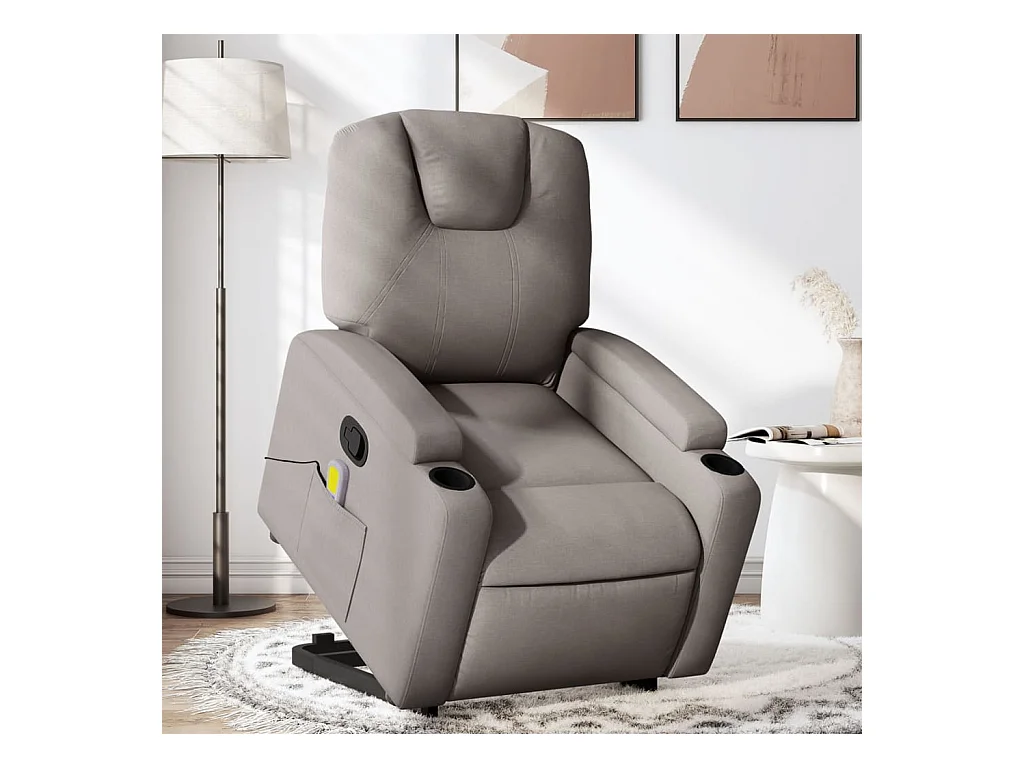 Poltrona elevatória de massagens tecido cinzento-acastanhado