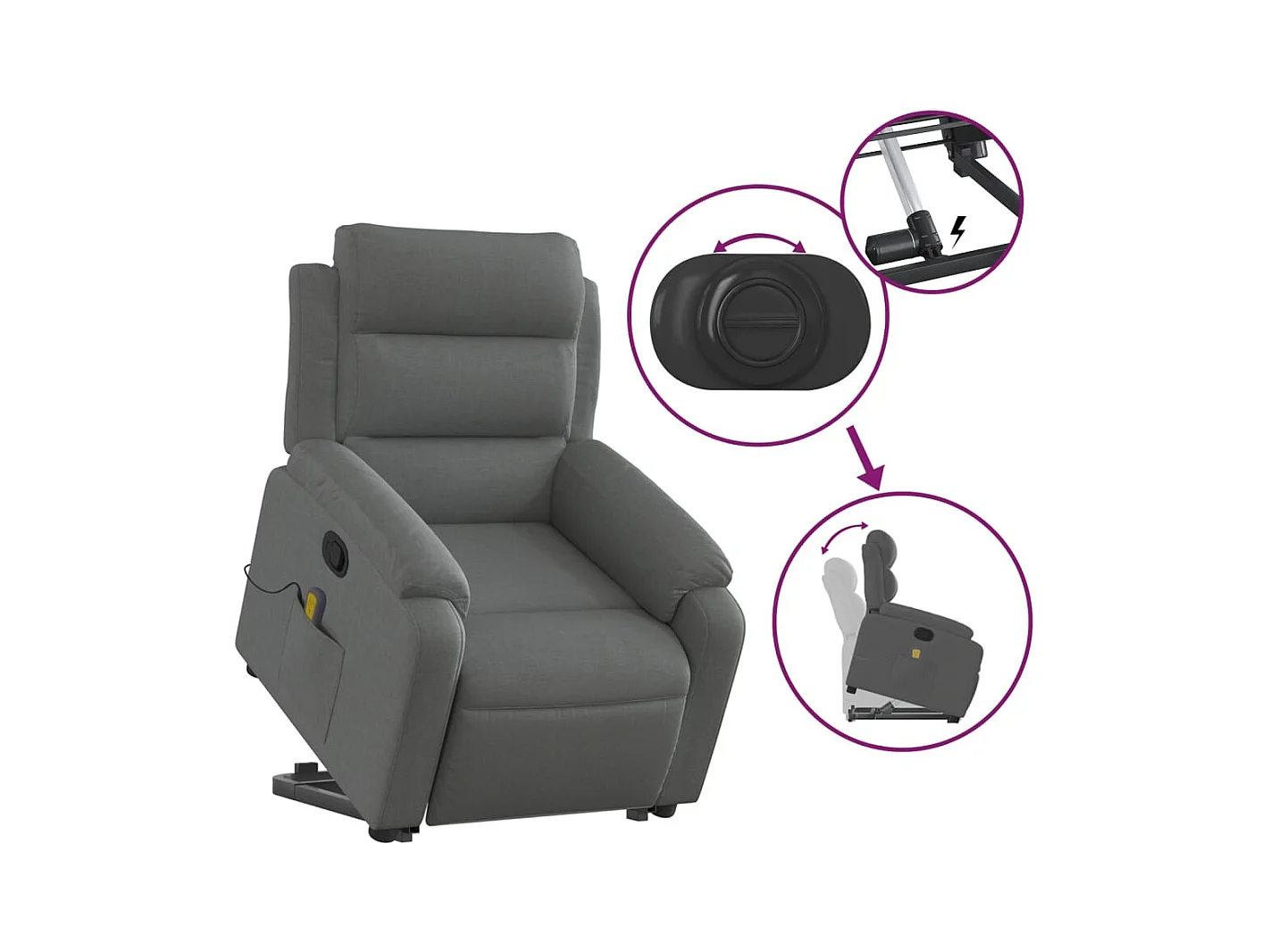 Poltrona elevatória de massagens tecido cinzento-escuro SHL251727