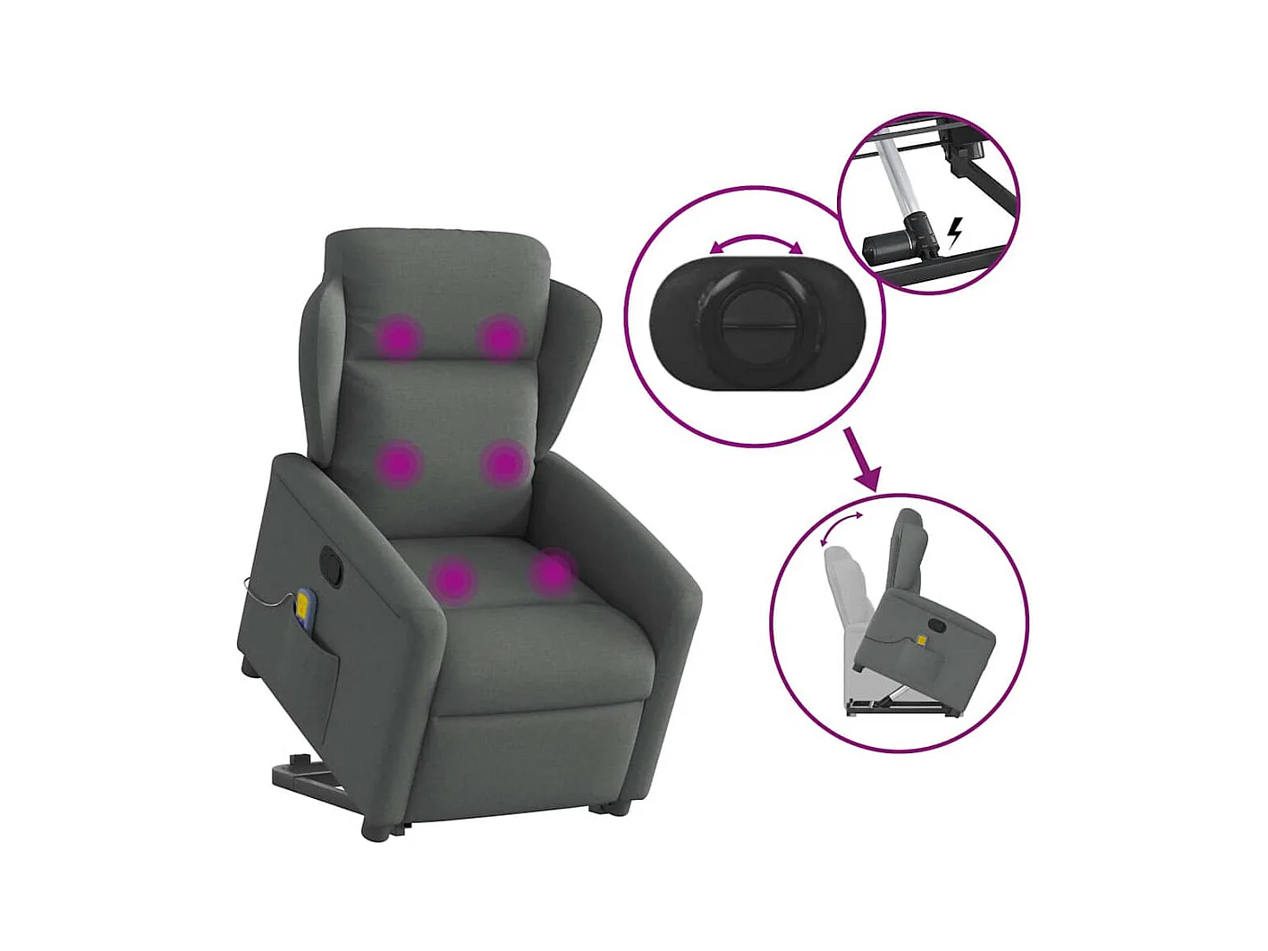 Poltrona elevatória de massagens tecido cinzento-escuro SHL403692