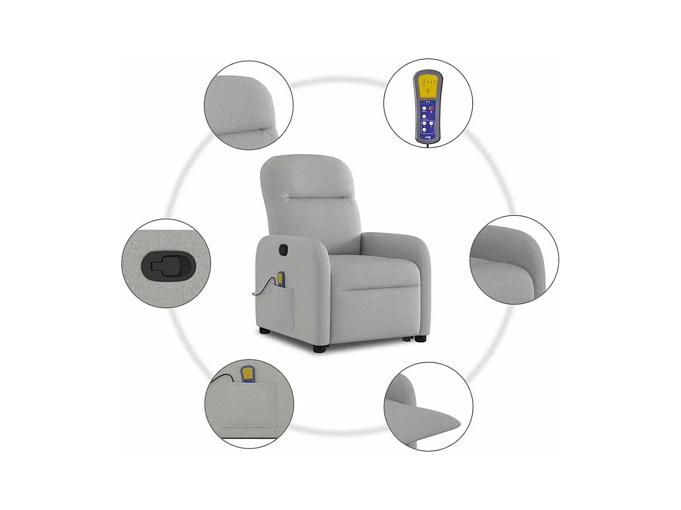 Poltrona elétrica elevatória massagens tecido cinzento-nublado SHL313524