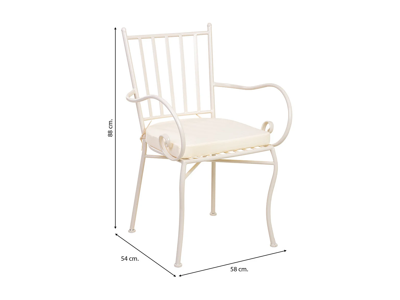Poltrona em ferro forjado com almofada 58x54x88h cm