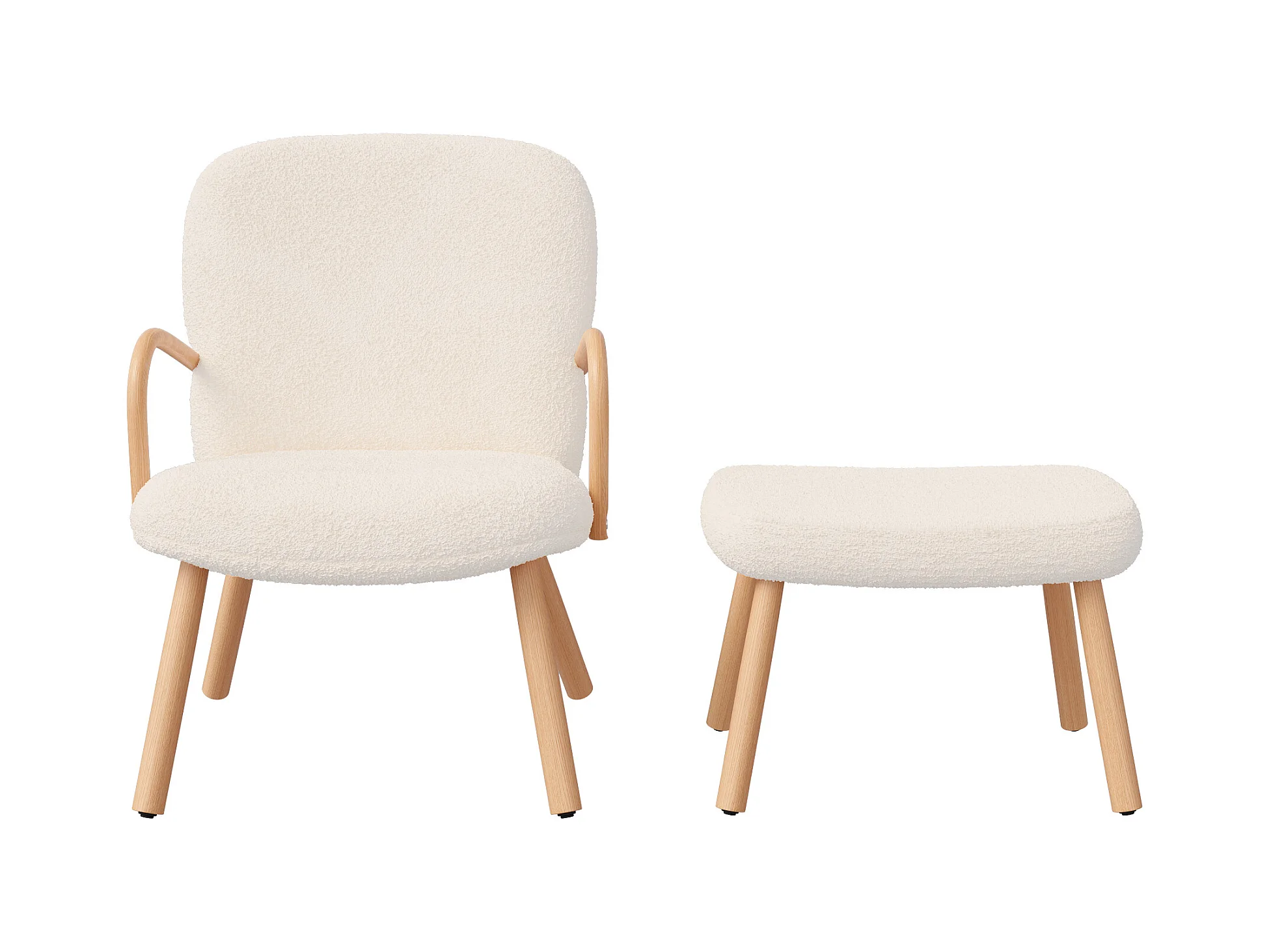 Poltrona escandinava de imitação de cashmere, pufe, sala de estar, bege