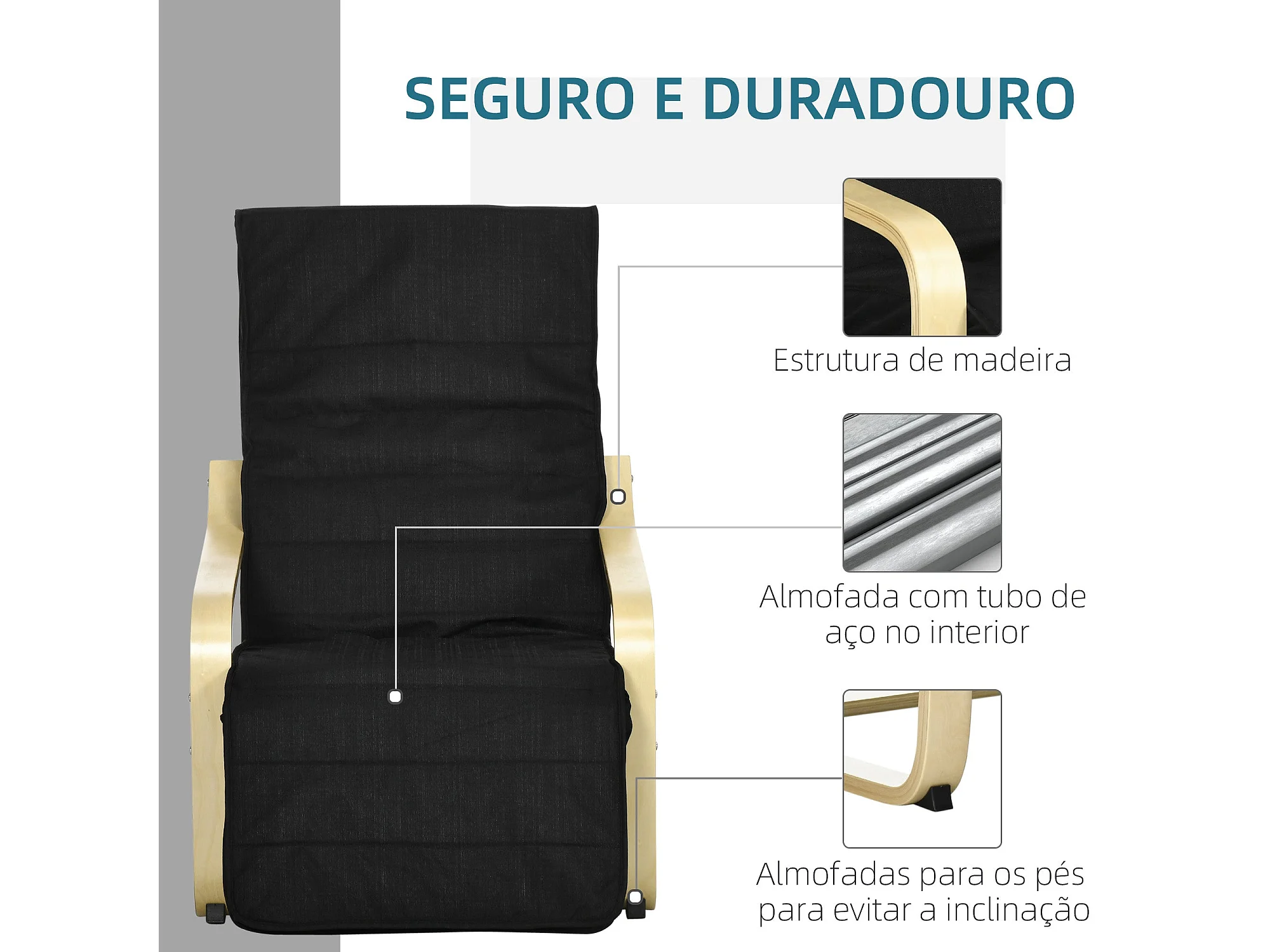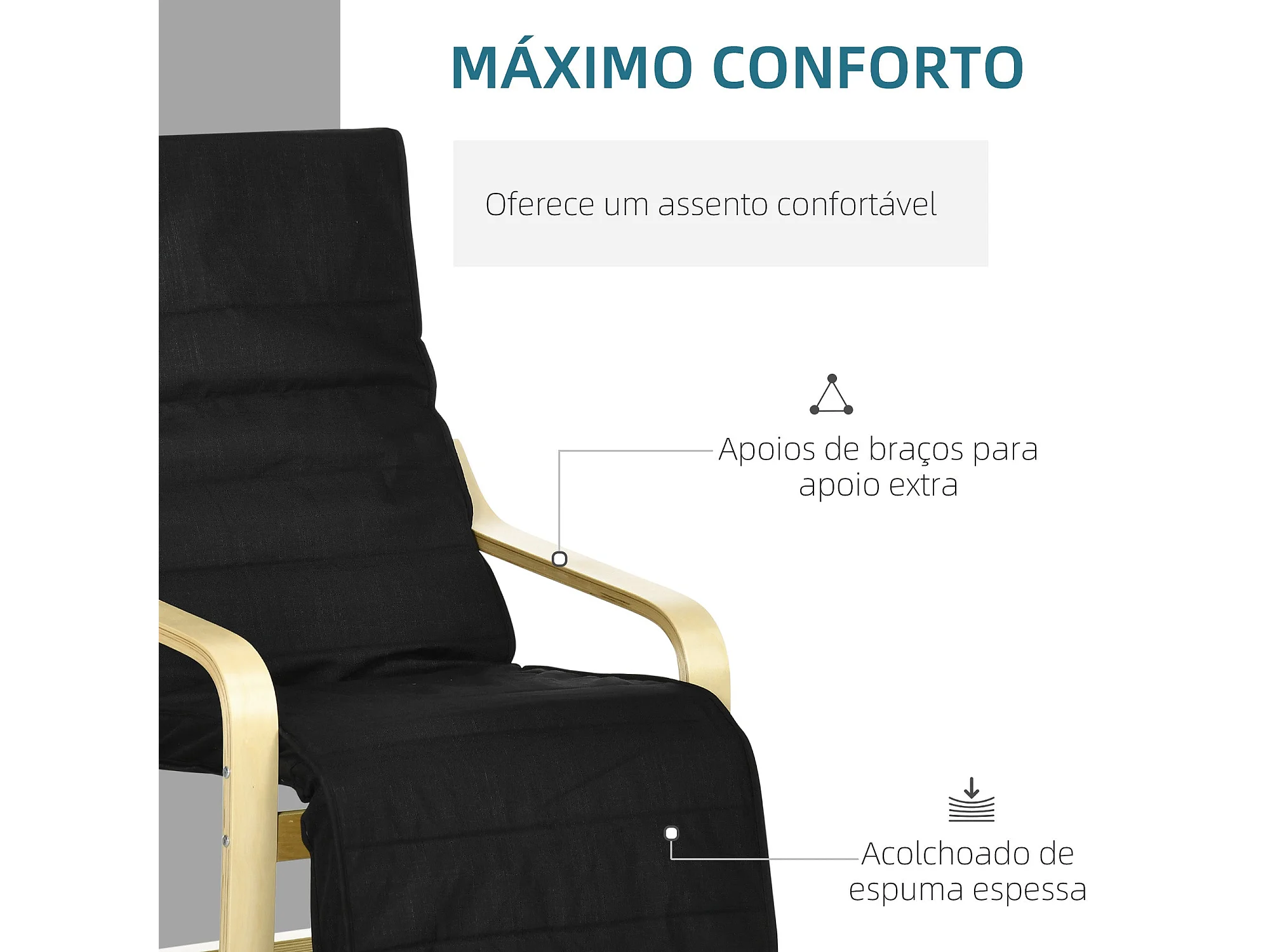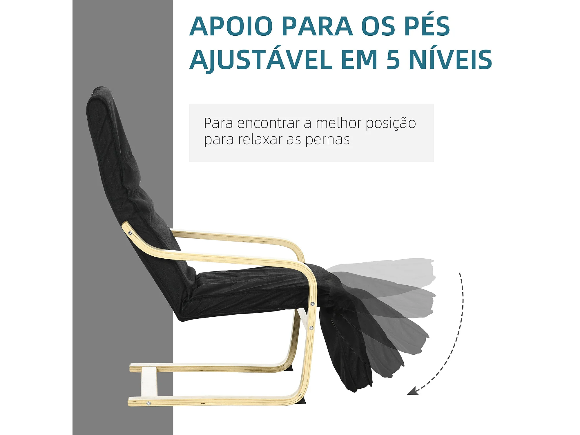 Poltrona Estofada Moderna com Apoio para os Pés Ajustáveis em Tecido Preto - Ideal para Sala de Estar e Escritório