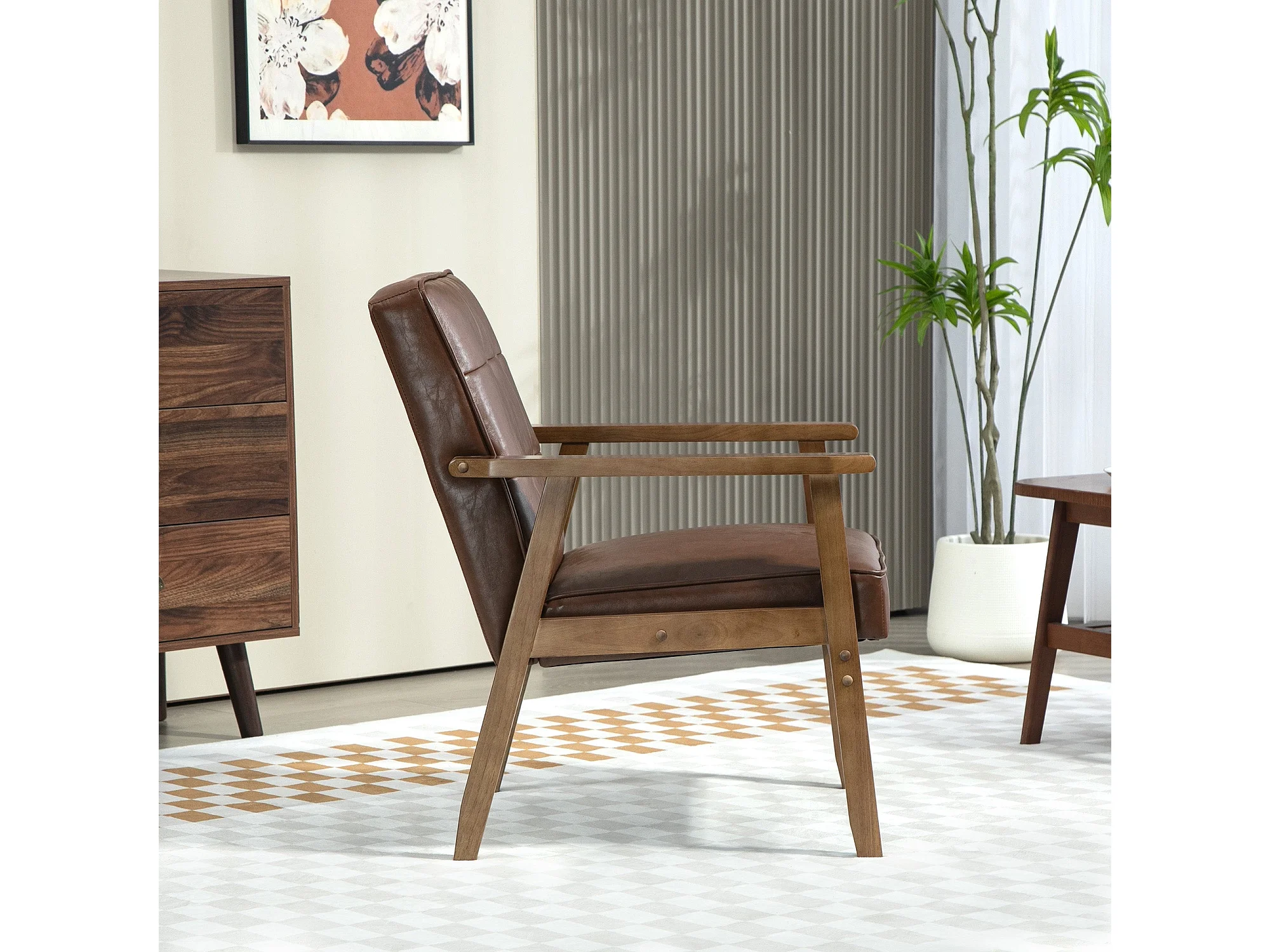 Poltrona Estofada Moderna para Sala de Estar com Apoio para Braços e Estrutura de Madeira de Borracha - Modelo Dijon
