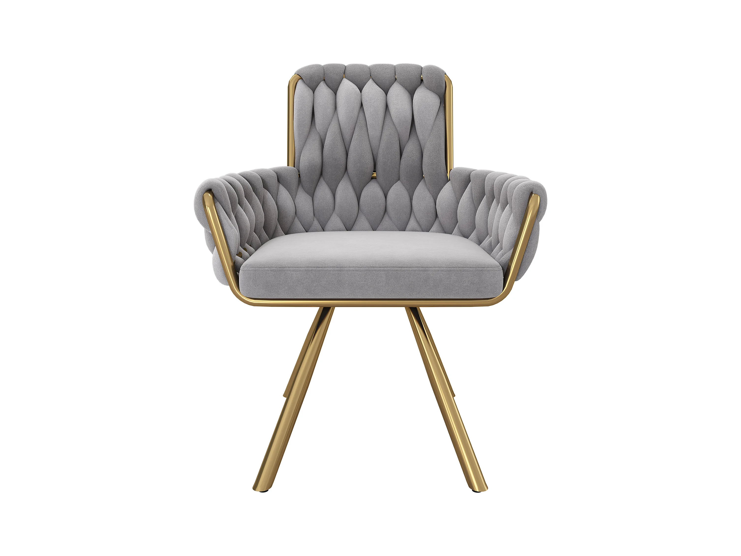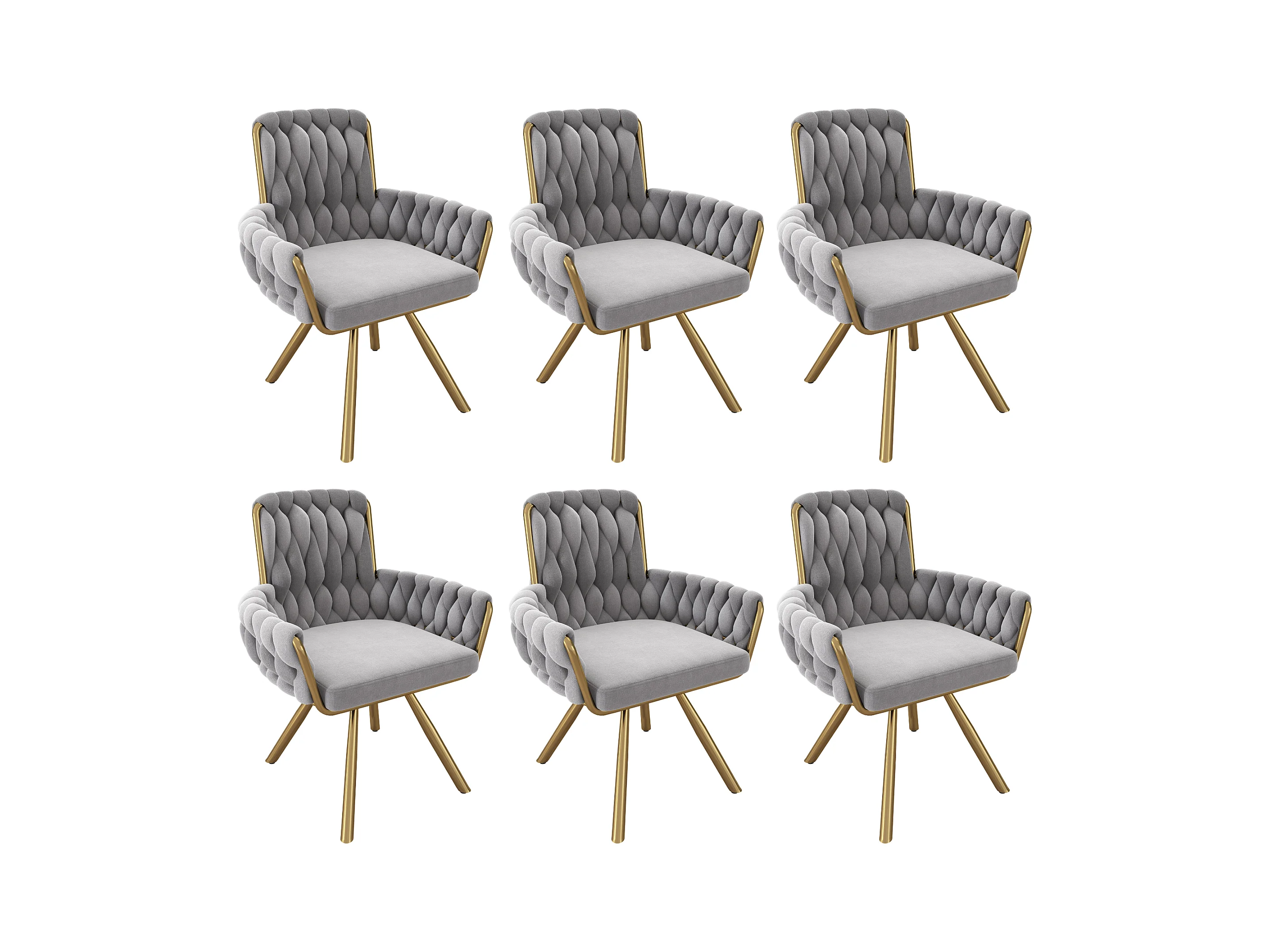 Poltrona giratória de veludo cinza com braços e pernas de metal para sala de estar e quarto, conjunto de 6