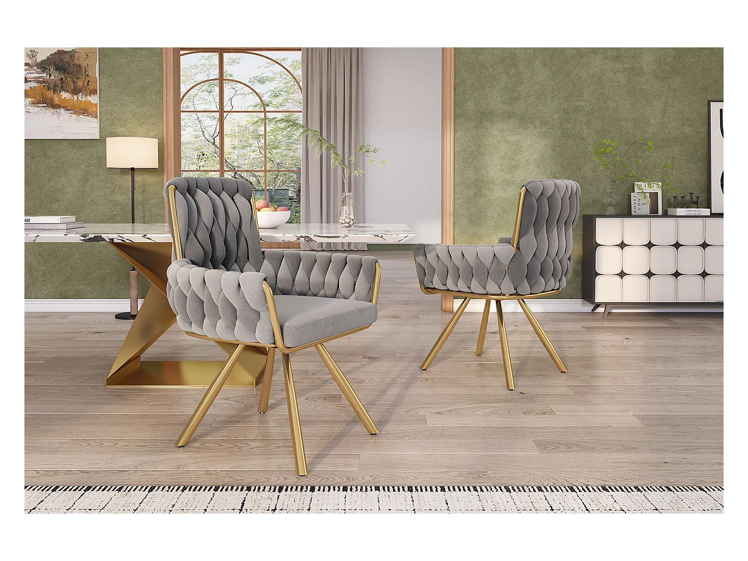 Cadeira giratória de veludo cinza com pernas de metal para sala de estar, quarto, escritório, design moderno, conjunto de 6