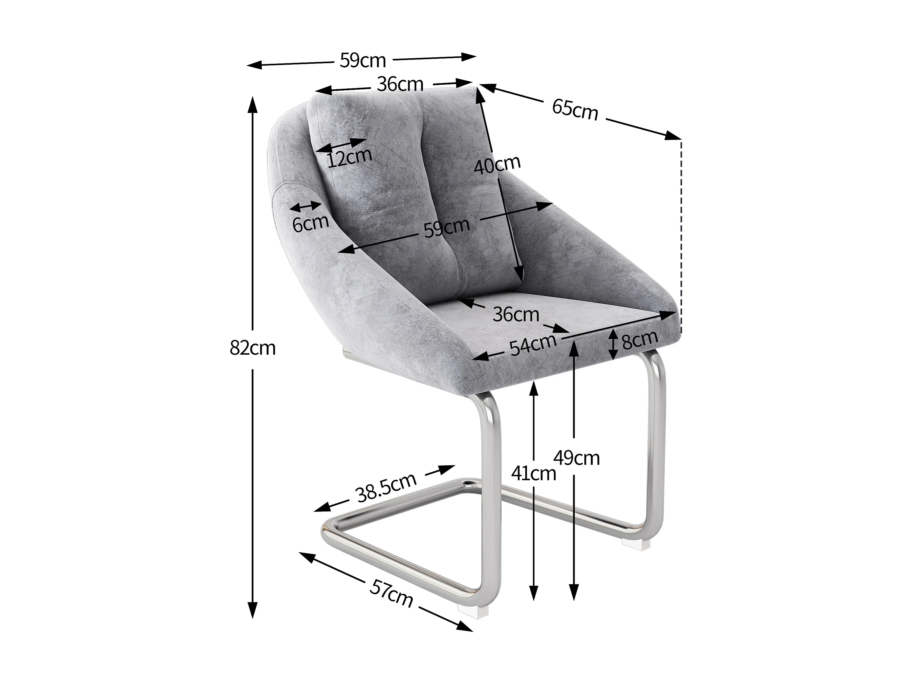 Poltrona giratória de veludo confortável para sala de estar, quarto, cadeira, design moderno, pernas arqueadas, cinza, conjunto de 6