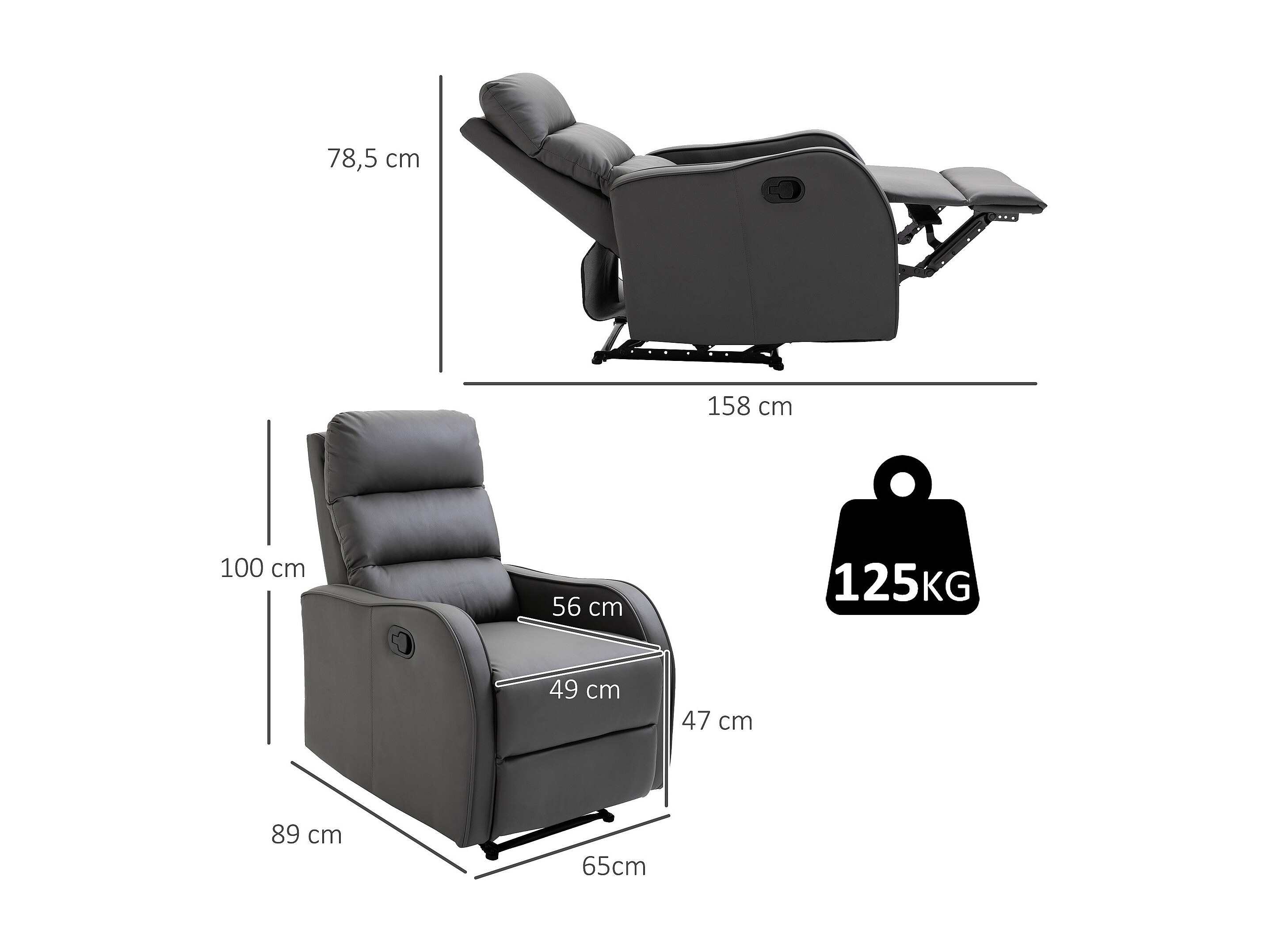 Poltrona giratória reclinável cinza com encosto reclinável e suporte para bebidas, microfibra, 125 kg