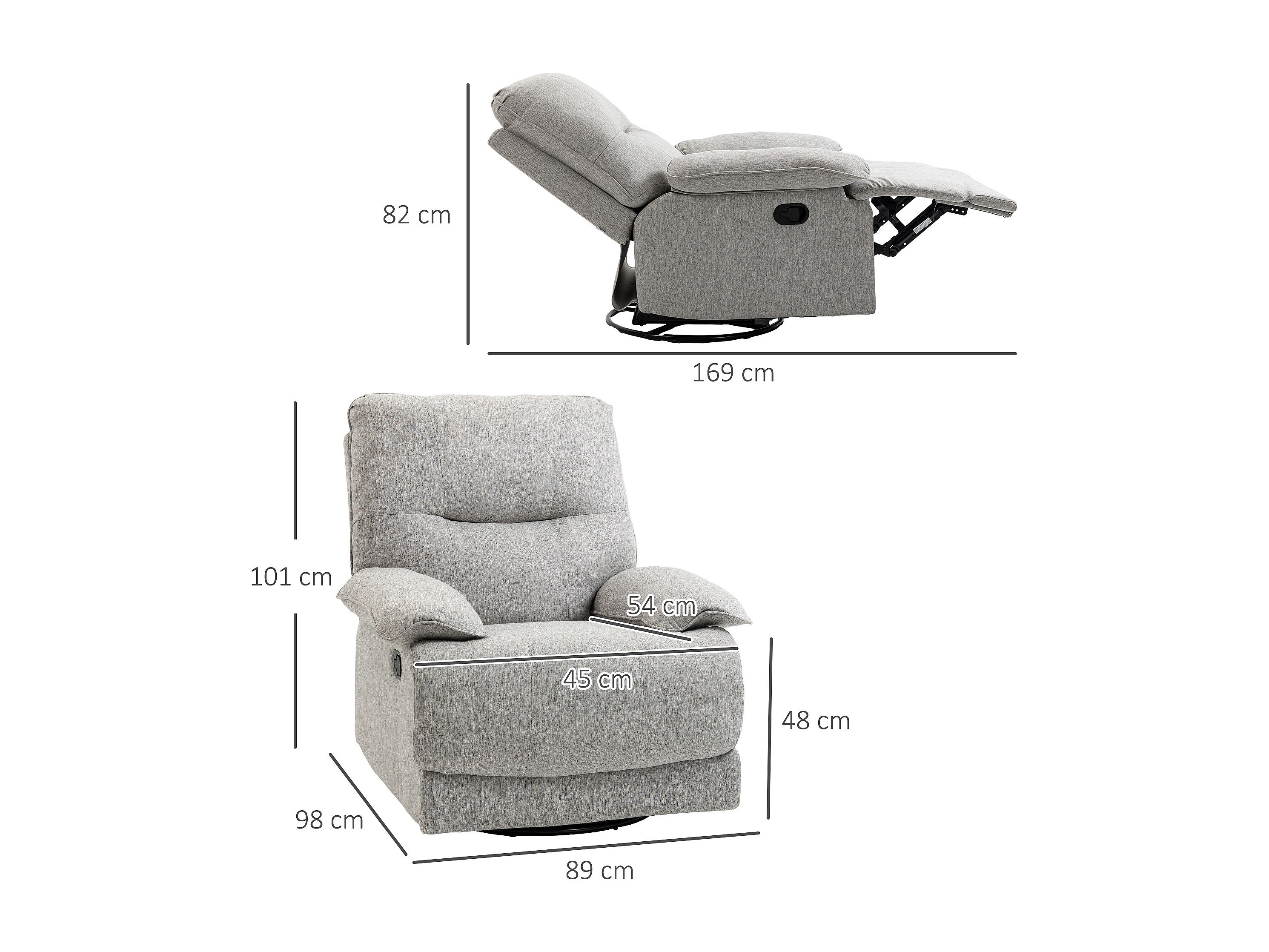 Poltrona giratória reclinável em tecido de linho com apoio para os pés e sistema de molas para sala de estar 89x98x101 cm