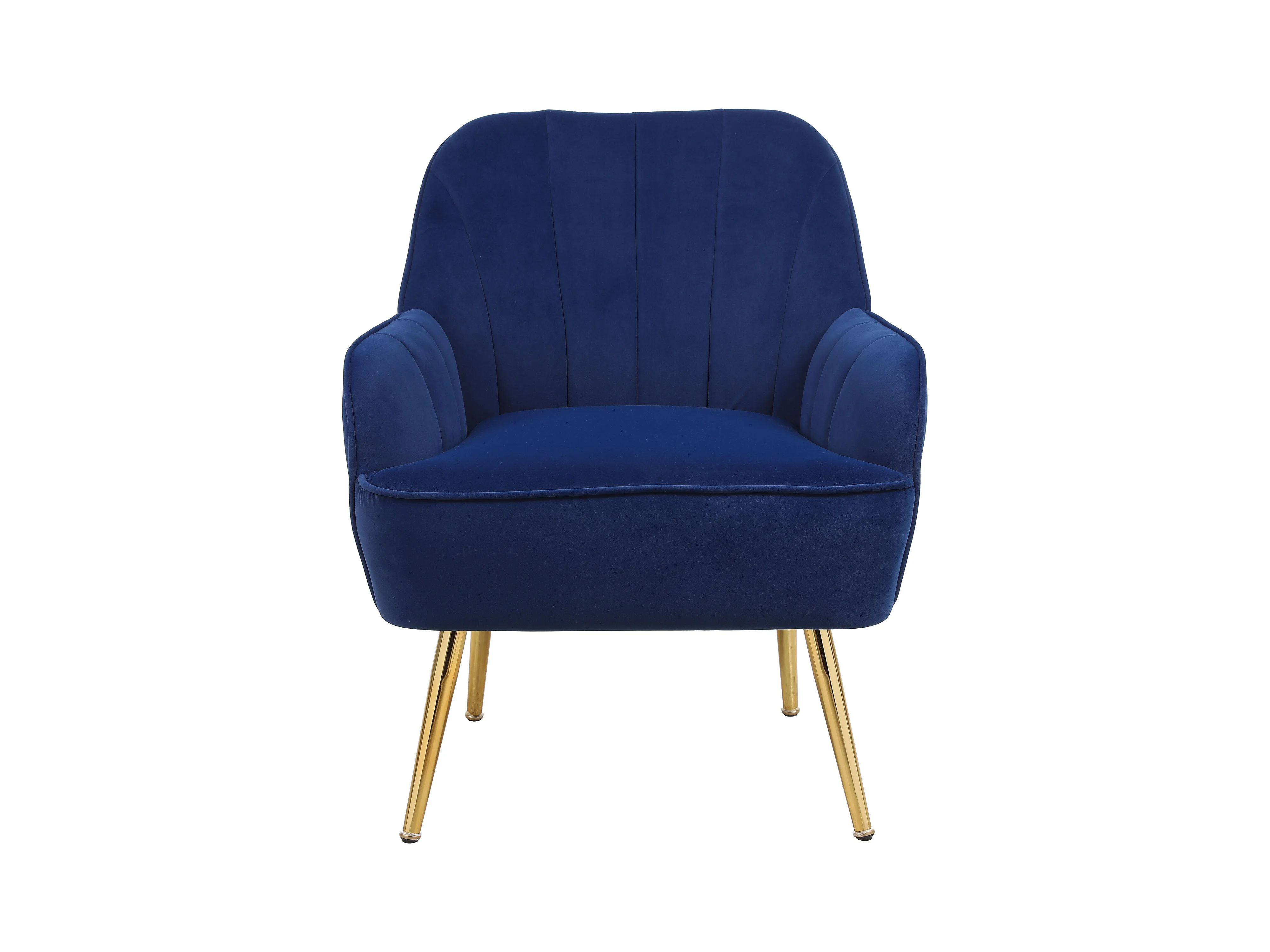 Poltrona Lounge de Veludo Azul Escuro com Pernas de Metal para Sala de Estar, Escritório e Quarto