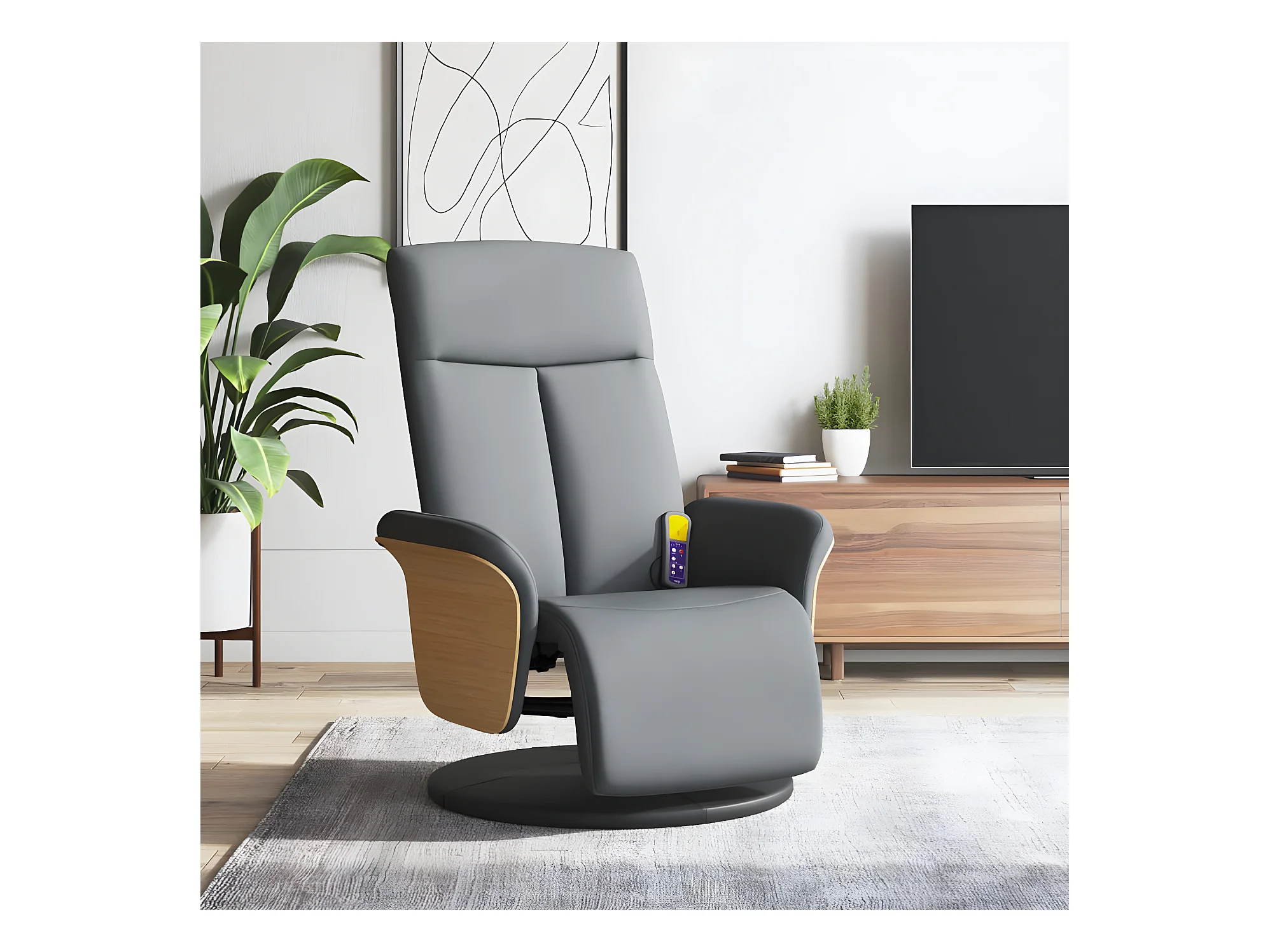 Poltrona de massagem reclinável com apoio para os pés em couro sintético cinza