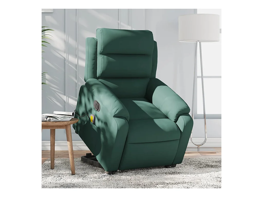 Poltrona Confortável | Poltrona reclinável elevatória de massagens tecido verde-escuro SHL166268