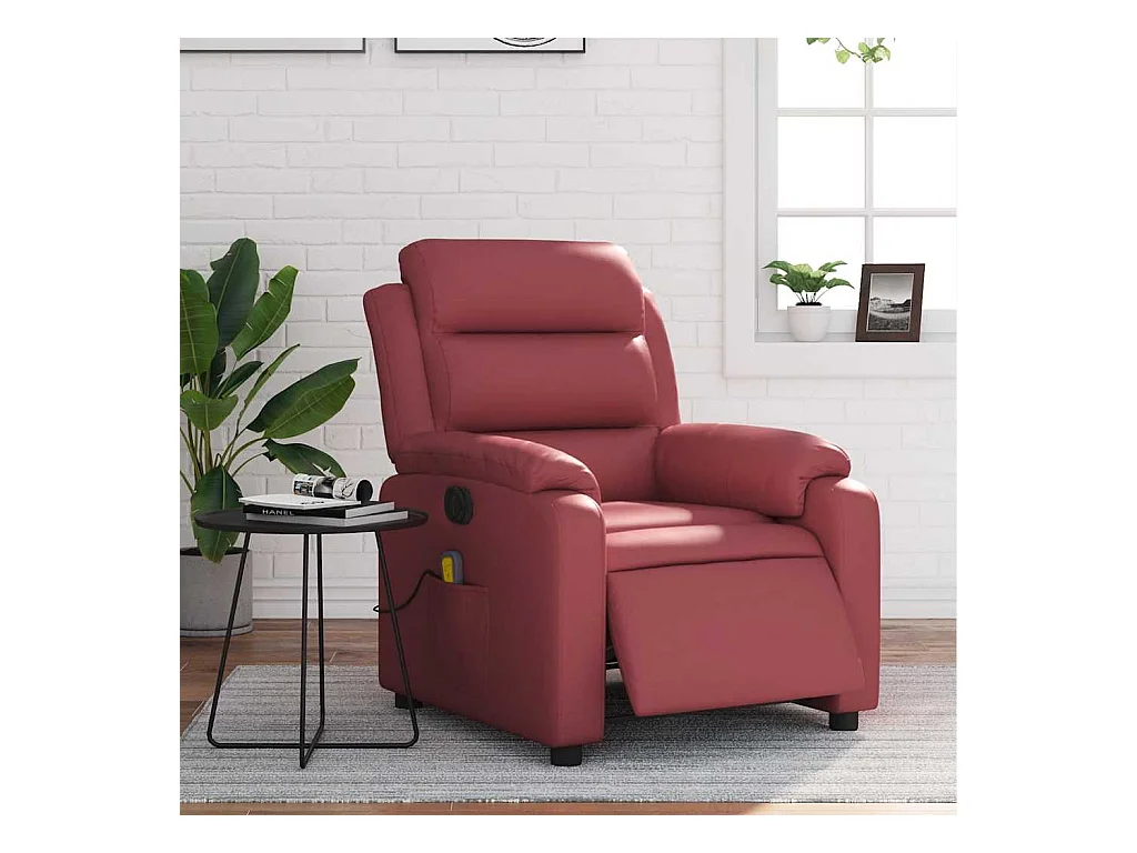 Poltrona massagens reclin. elétrica couro artif. vermelho-tinto SHL784007