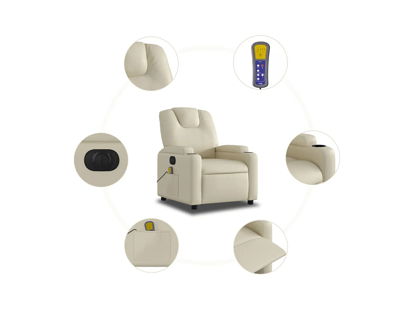 Poltrona massagens reclinável elétrica couro artificial creme