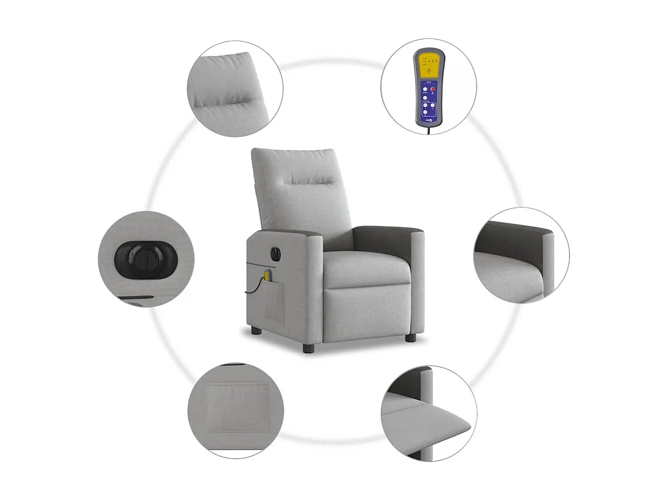 Poltrona reclinável massagens | Poltrona Confortável tecido cinzento-claro SHL24627