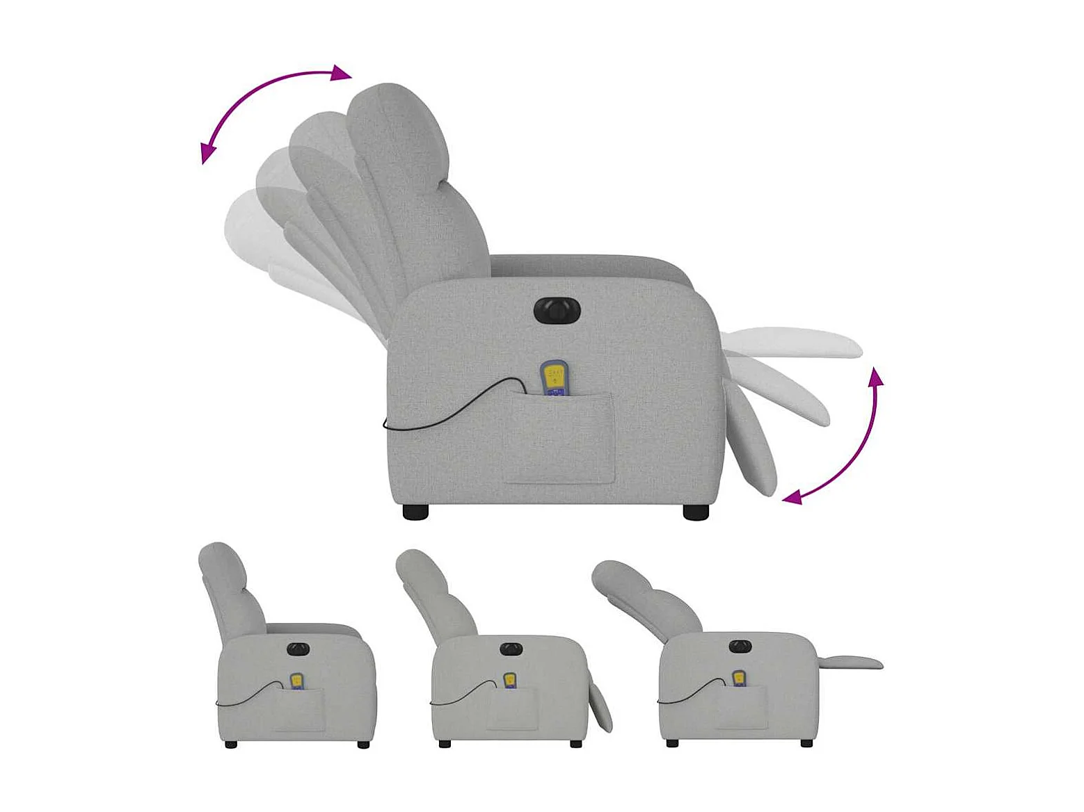 Poltrona elétrica reclinável massagens tecido cinzento-claro SHL64648