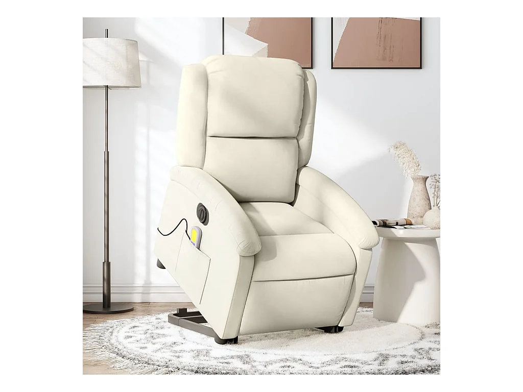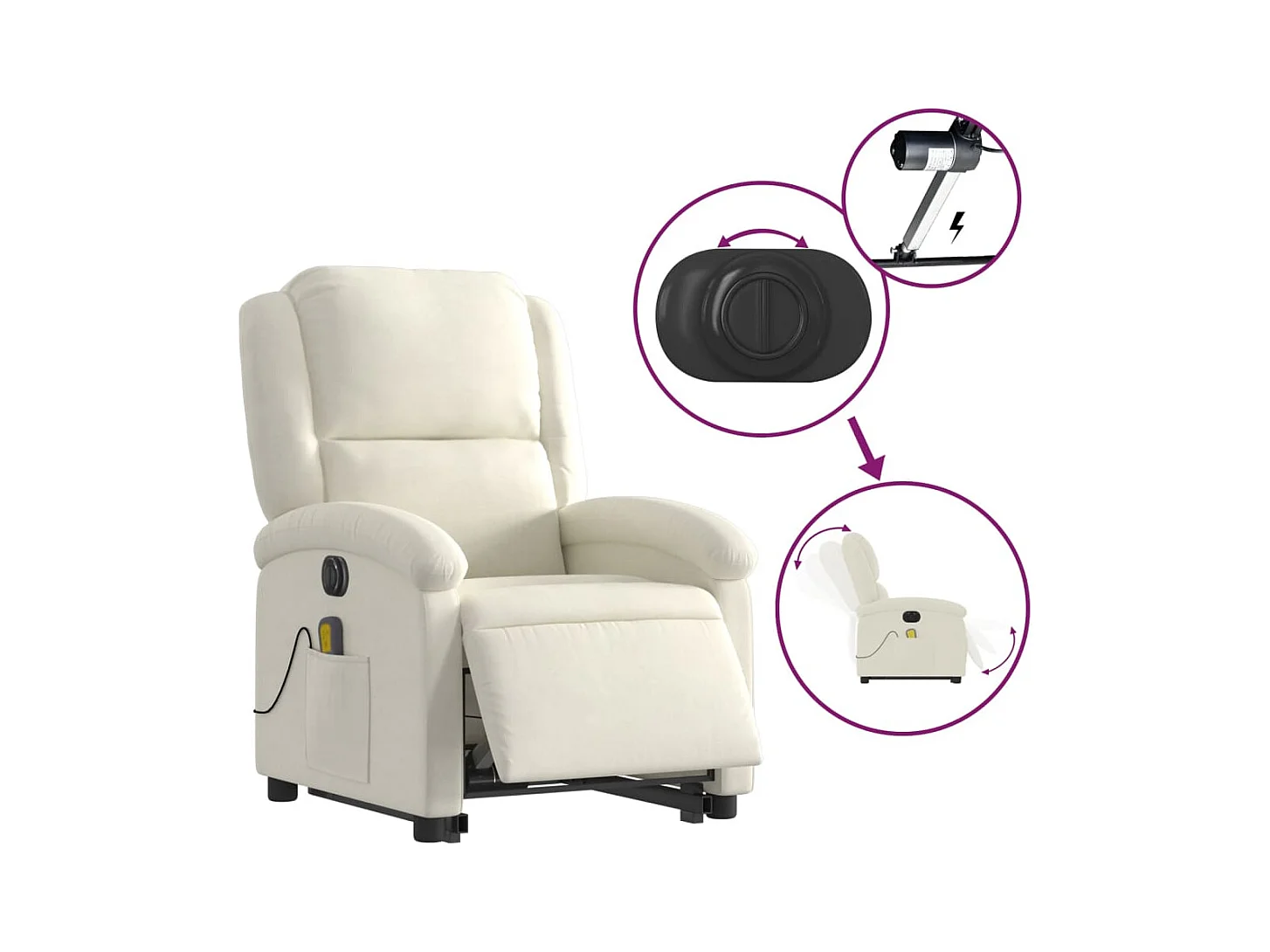 Poltrona massagens reclinável elevatória elétrica veludo creme