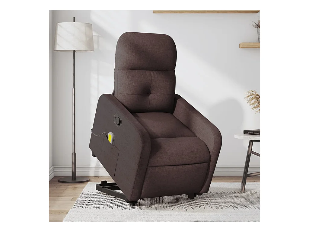 Poltrona massagens reclinável elevatória tecido castanho-escuro