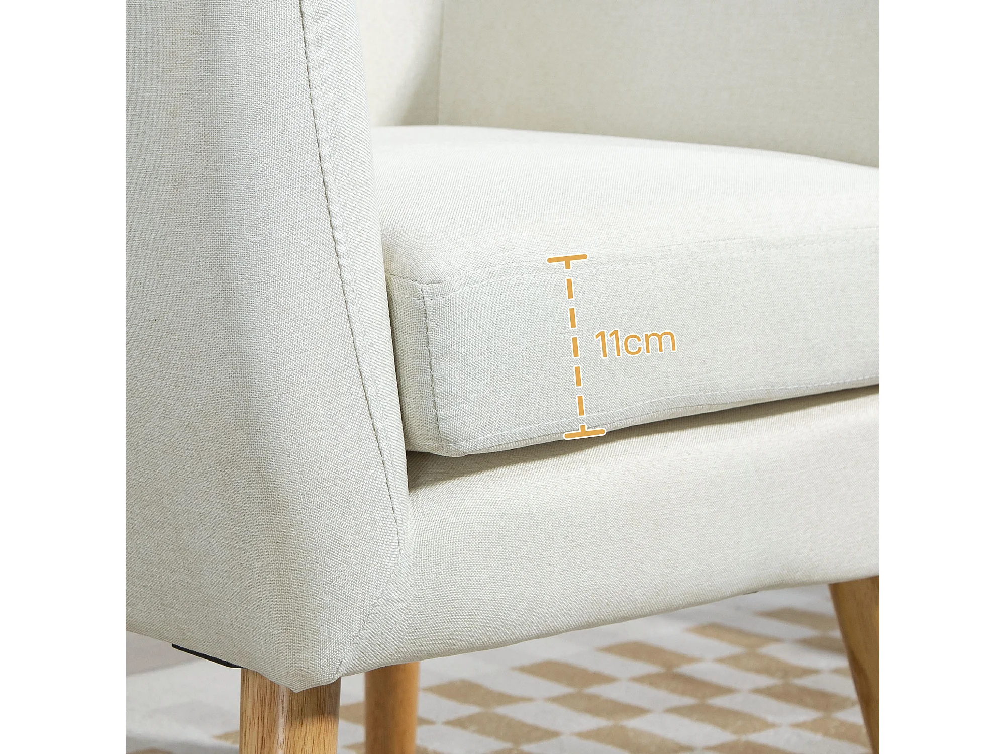 Poltrona Moderna de Estar e Dormitório com Braços e Pés de Madeira - Modelo Helsinki em Creme