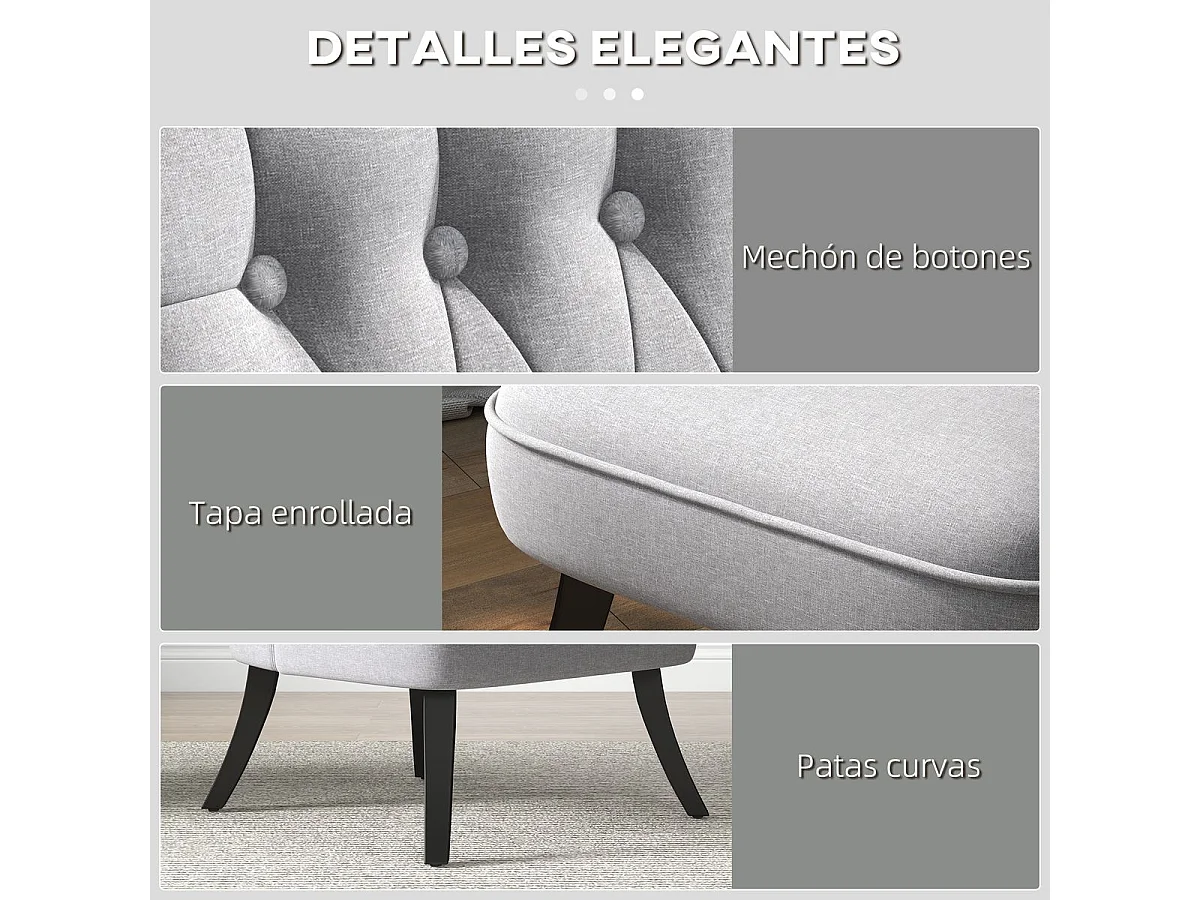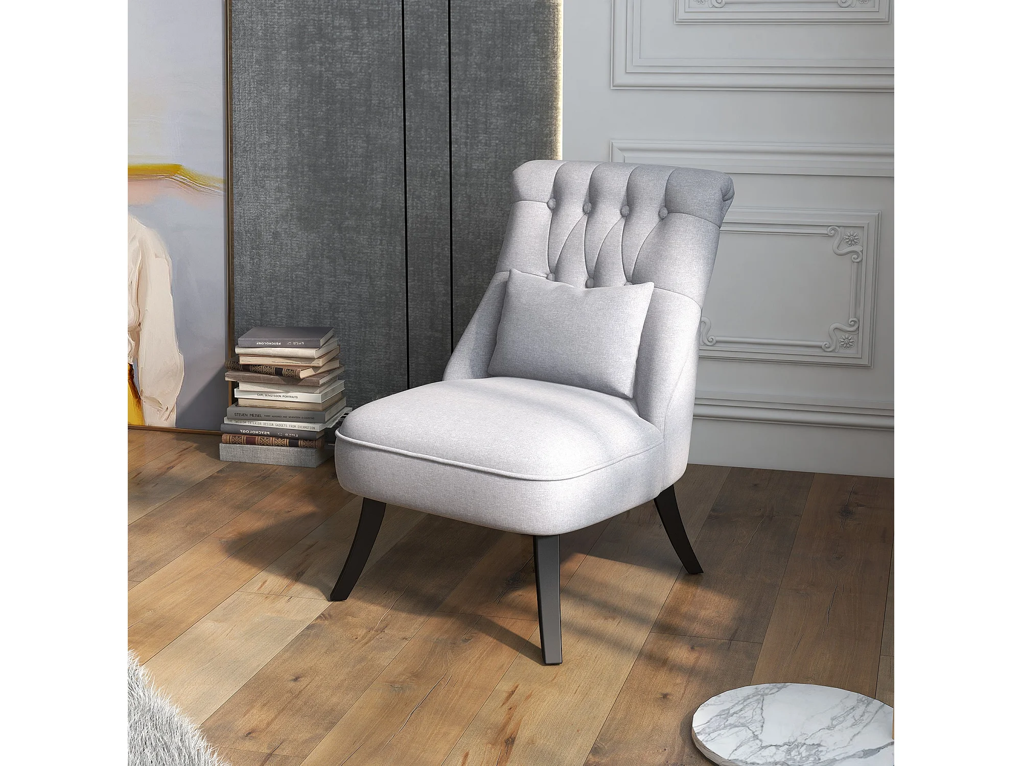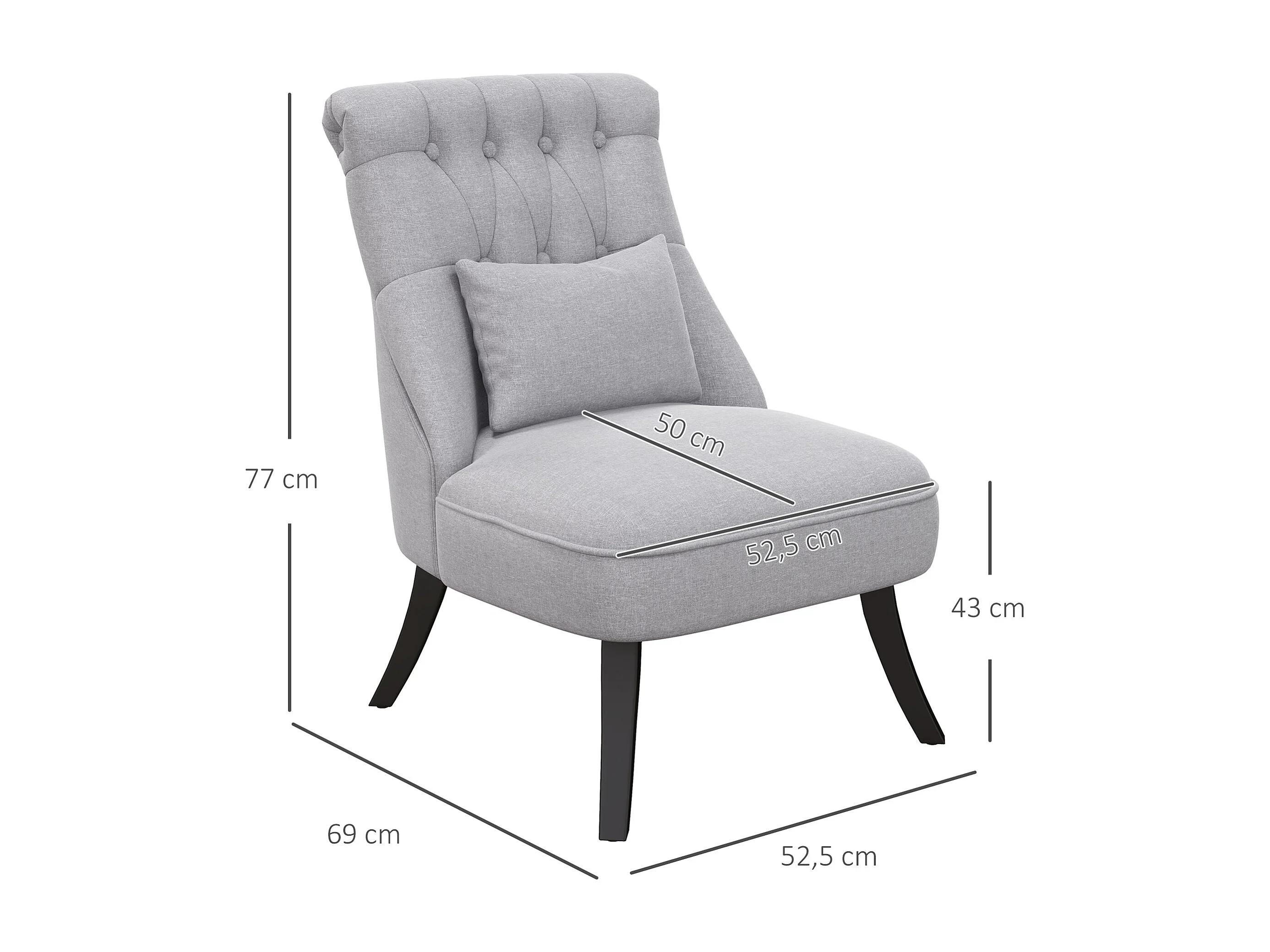 Poltrona Moderna Estofada em Linho para Sala de Estar e Quarto - Modelo Dijon Cinza 52,5x69x77 cm