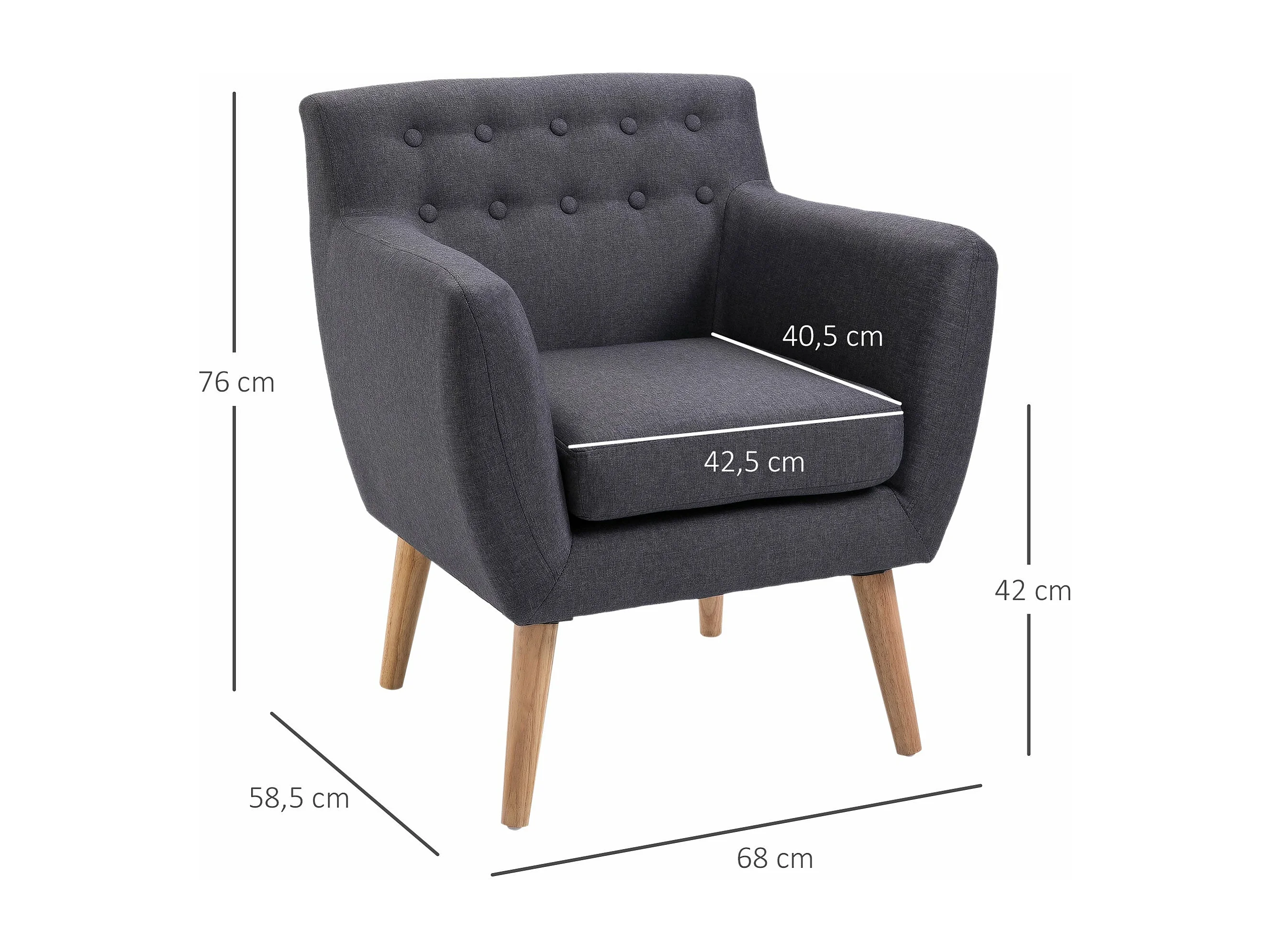 Cadeira lounge 52x75x76 cm tecido cinzento-escuro