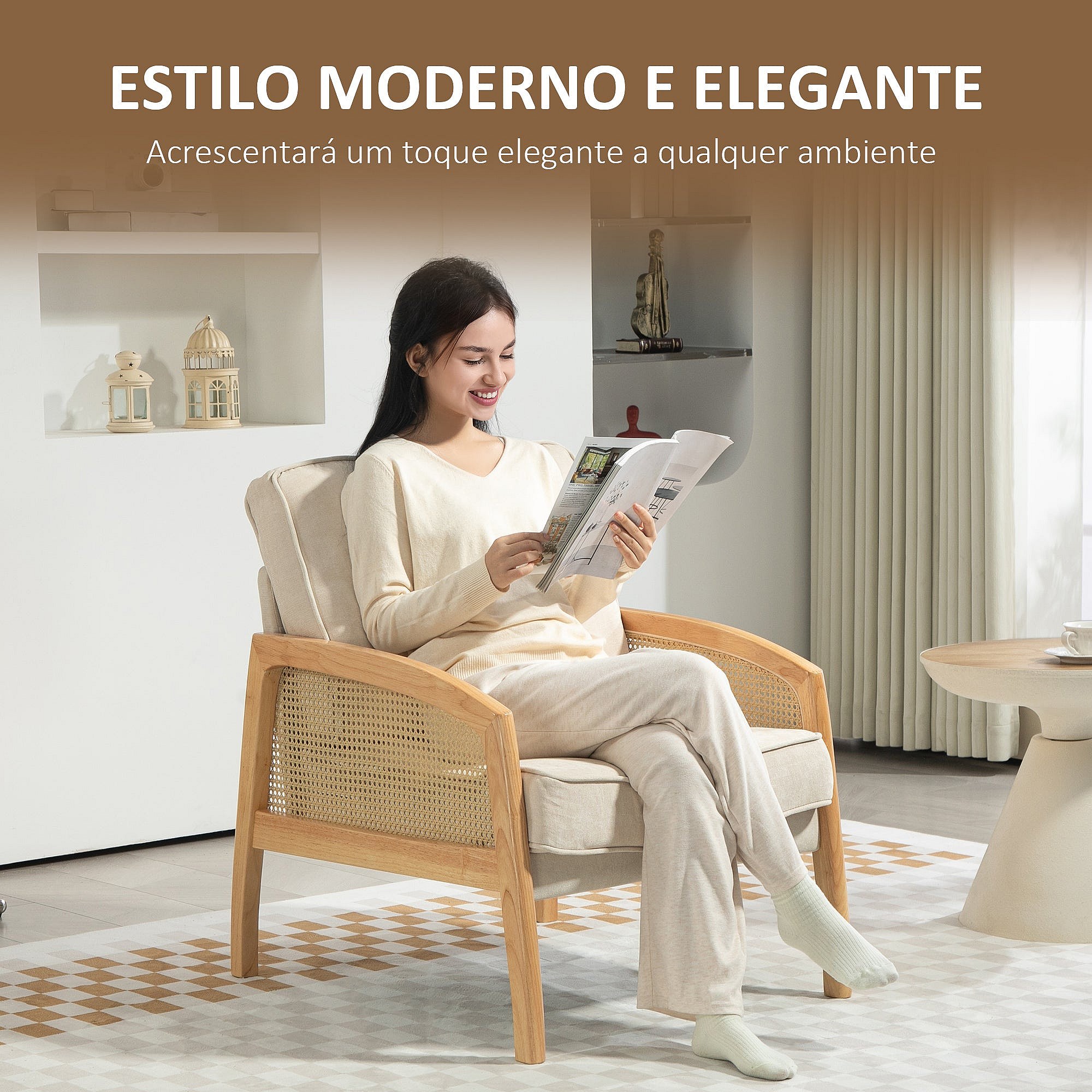 Poltrona Moderna para Sala de Estar e Escritório com Apoio de Braços em Vime e Pés de Madeira