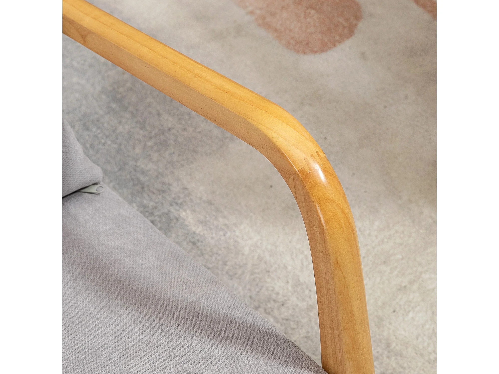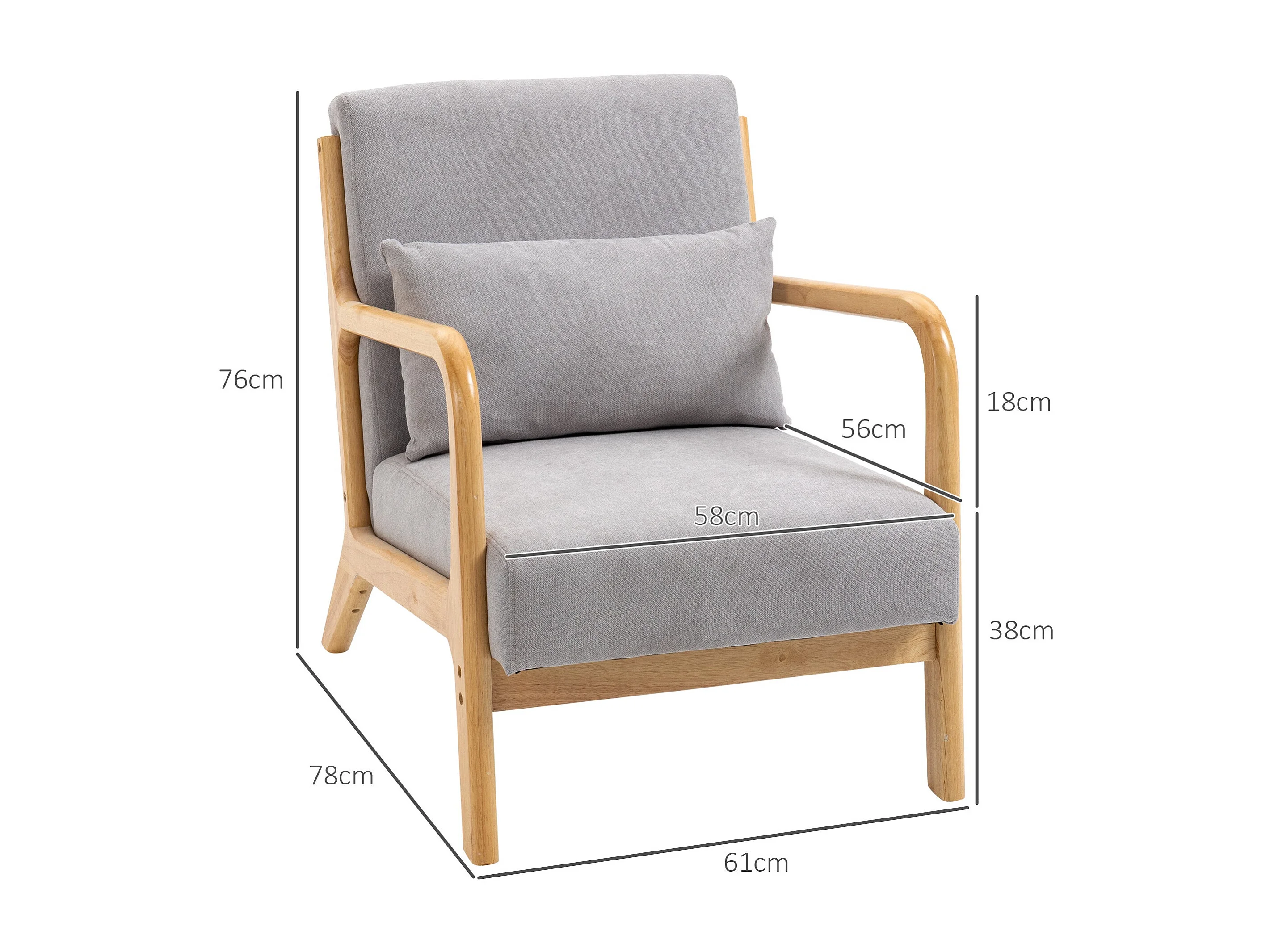 Poltrona Nórdica Acolchoada Cinza com Estrutura de Madeira para Sala de Estar ou Dormitório