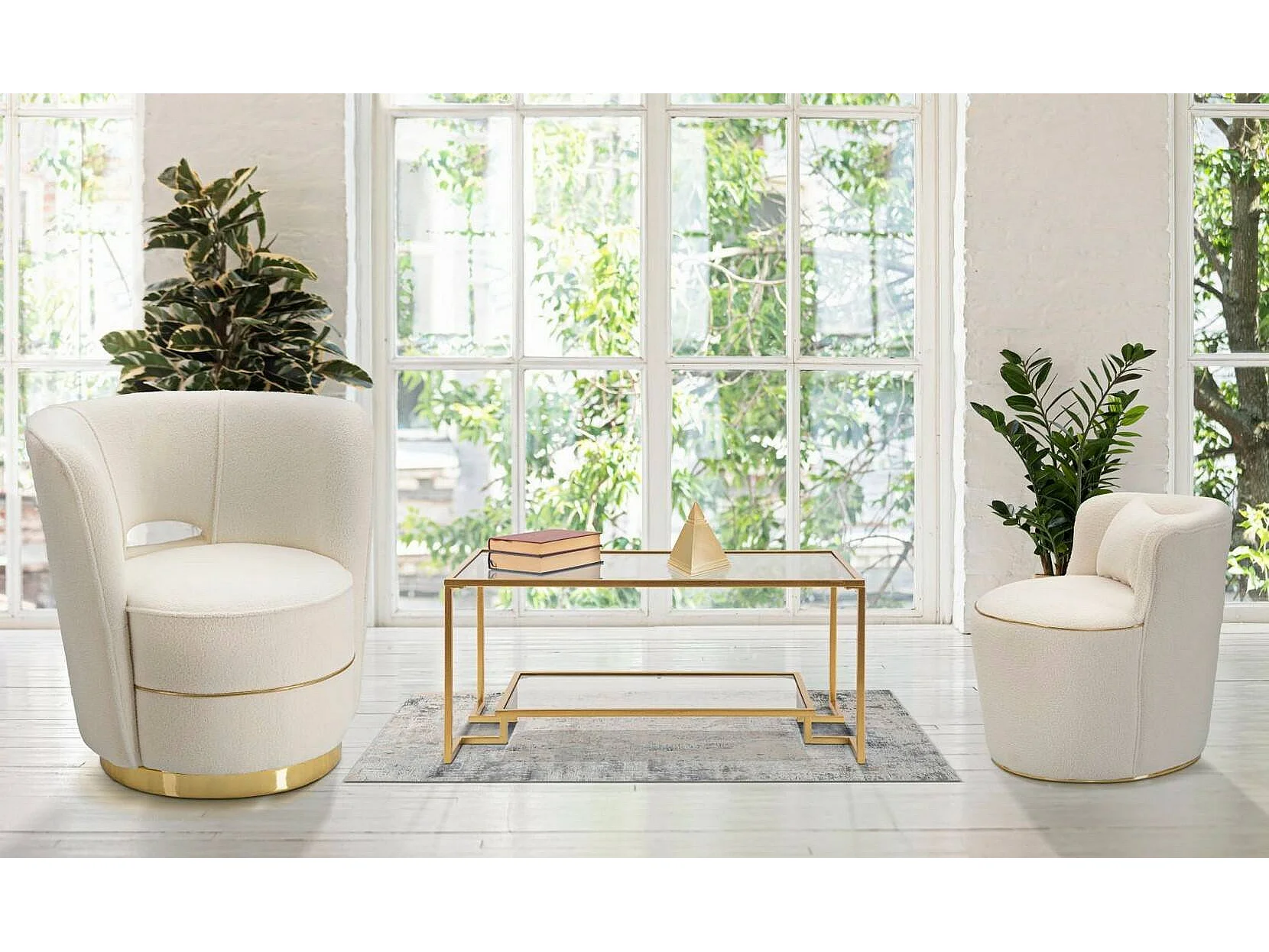 Poltrona Foster, Assento almofadado, Sofá individual de sala, Cadeira com braços, 88x77 h74 cm, Creme e Dourado