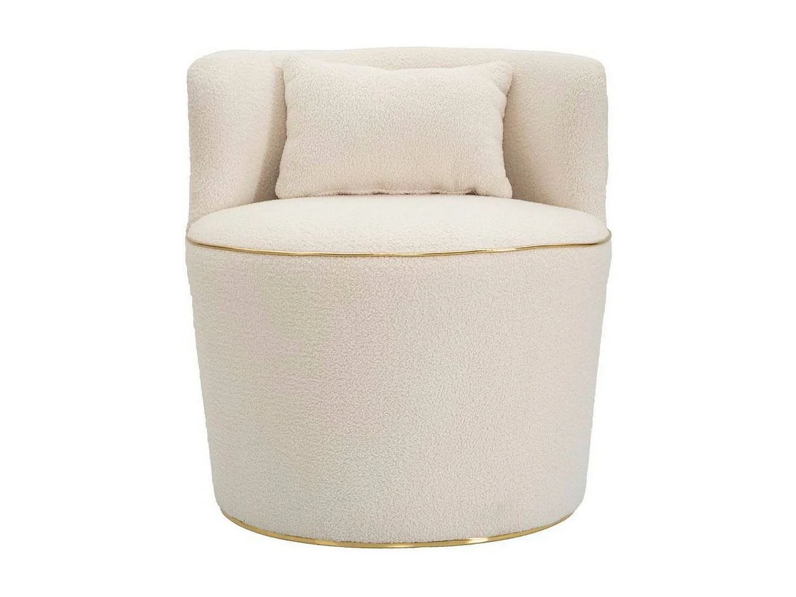 Poltrona Pratesi, Assento almofadado, Sofá individual de sala, Cadeira com braços, 63x68 h69 cm, Creme e Dourado