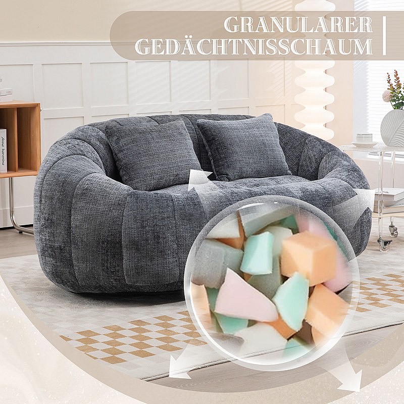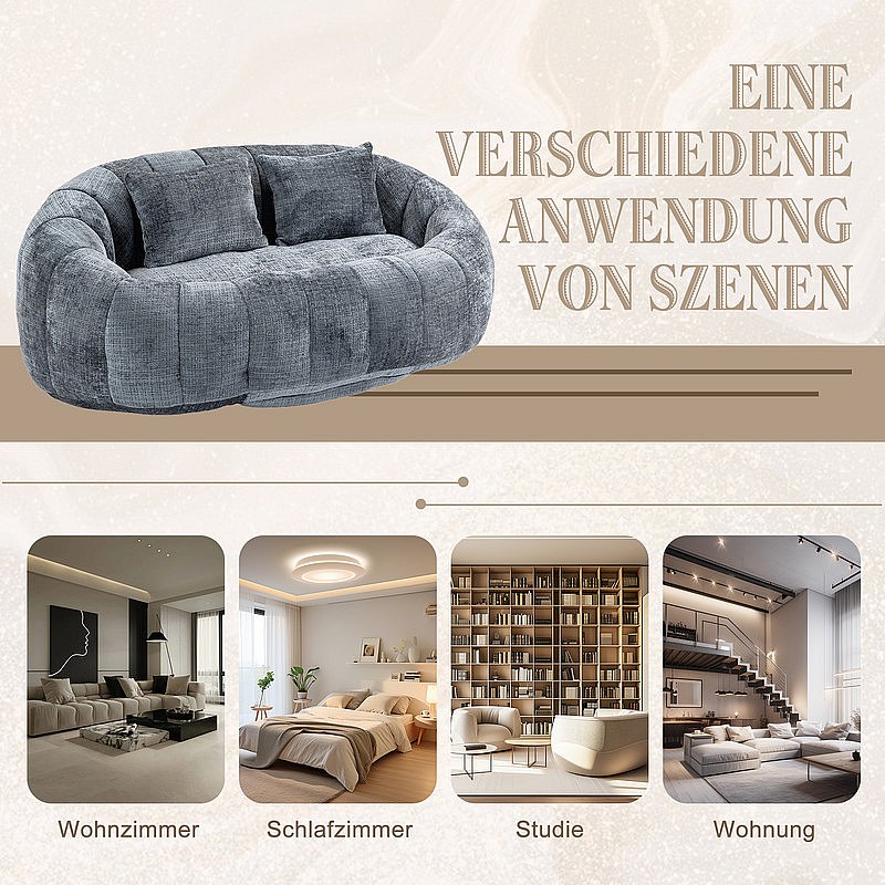 Poltrona Preguiçosa de Chenille - 2 Lugares - com 2 Almofadas - 62cm Profundidade do Assento - Carga Máx. 250kg - Cinza