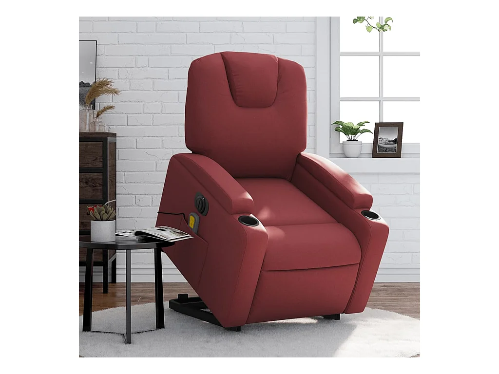 Poltrona elevatória de massagens elétrica tecido vermelho tinto