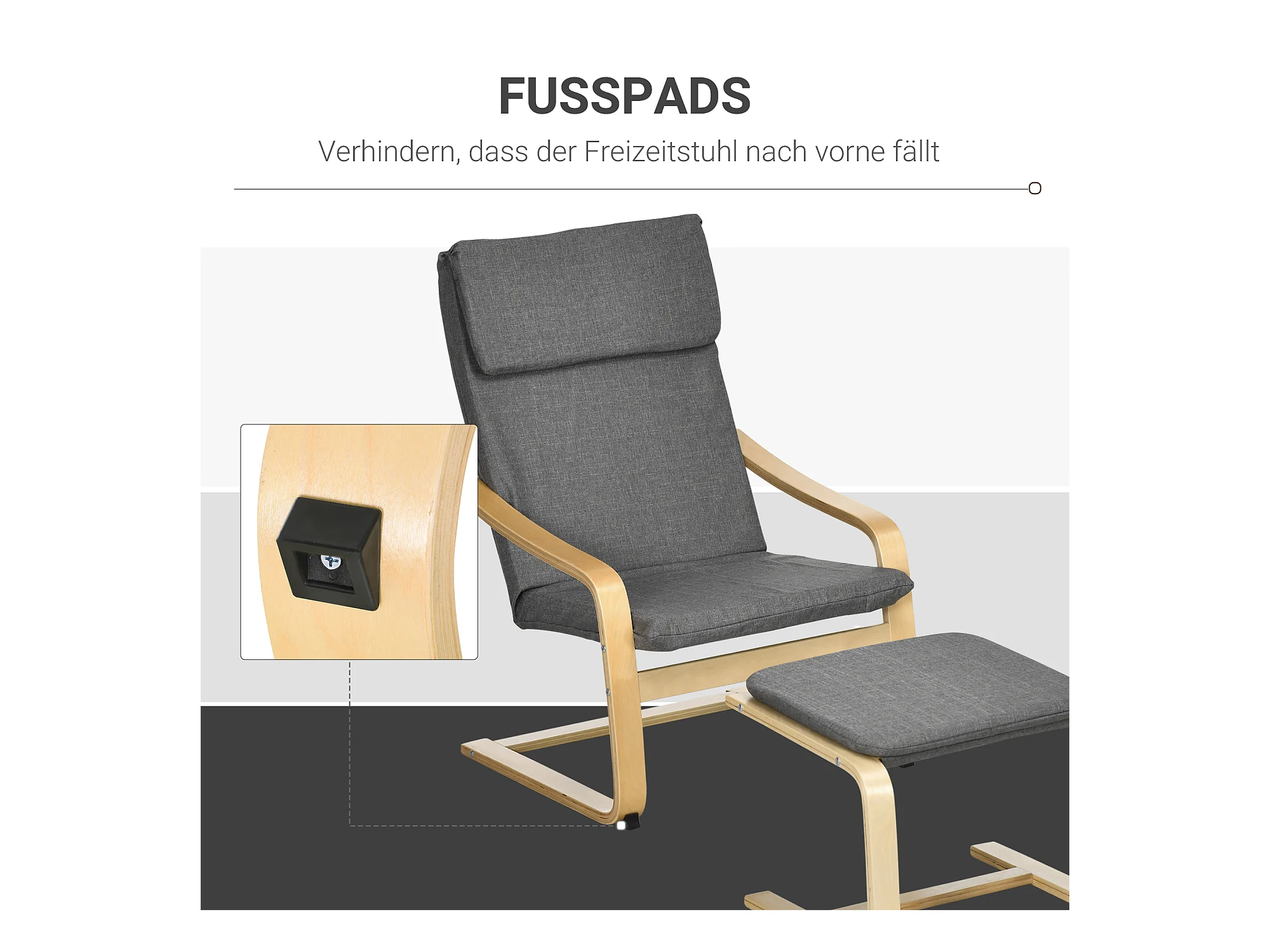 Poltrona escandinava em tecido "Odense" com apoio para os pés - Cinza claro