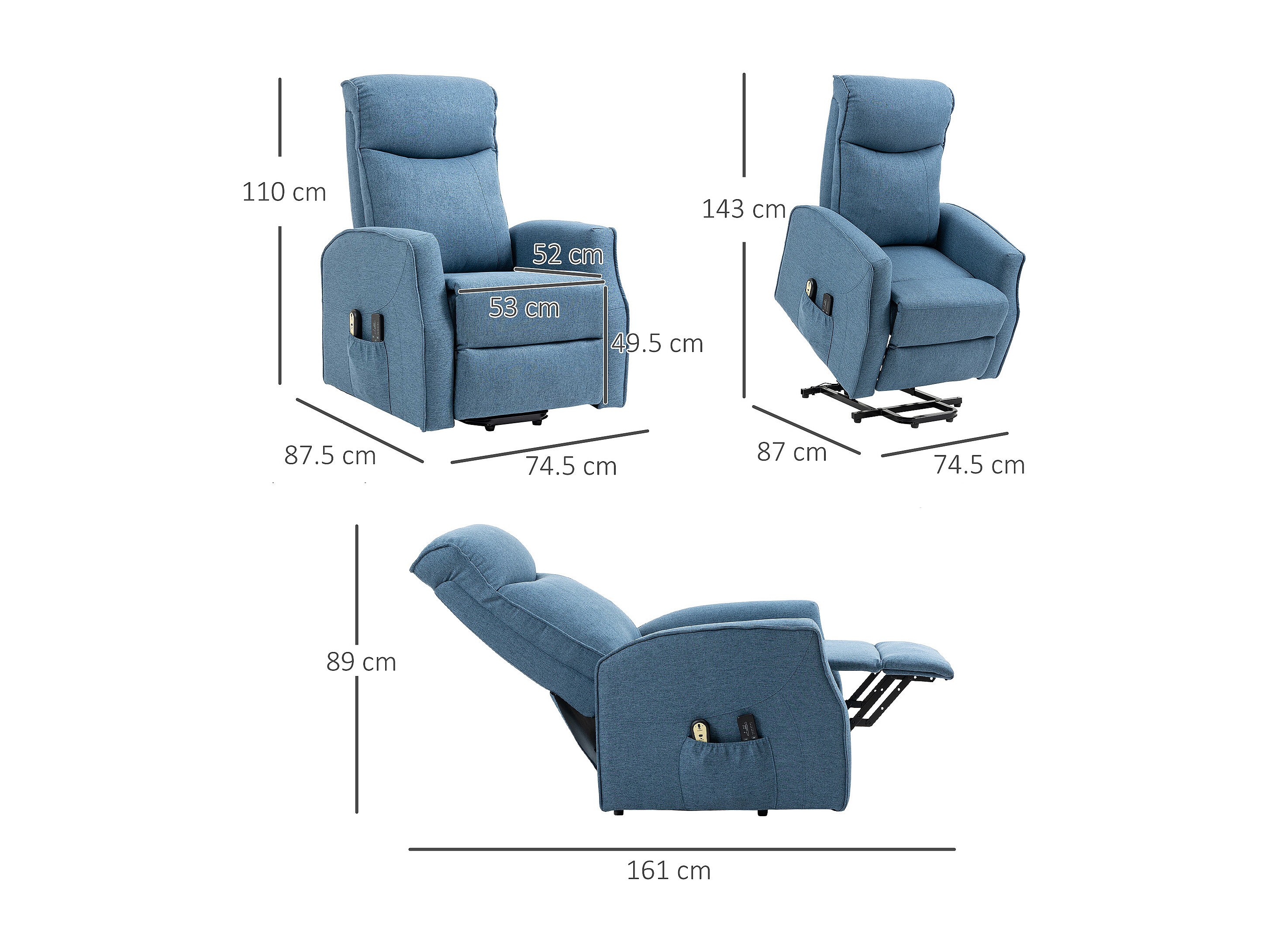 Poltrona reclinável de massagem em tecido com 8 pontos, inclinação de 135° e apoio para os pés, cinza, 74x87x110 cm