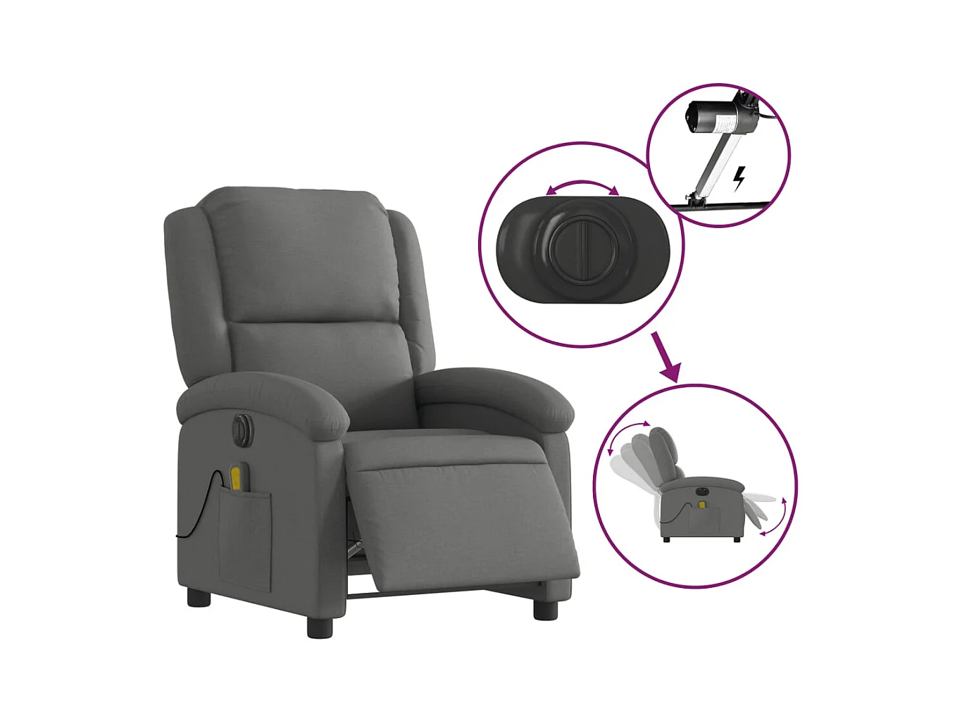Poltrona reclinável de massagens elétrica tecido cinza-escuro SHL121715